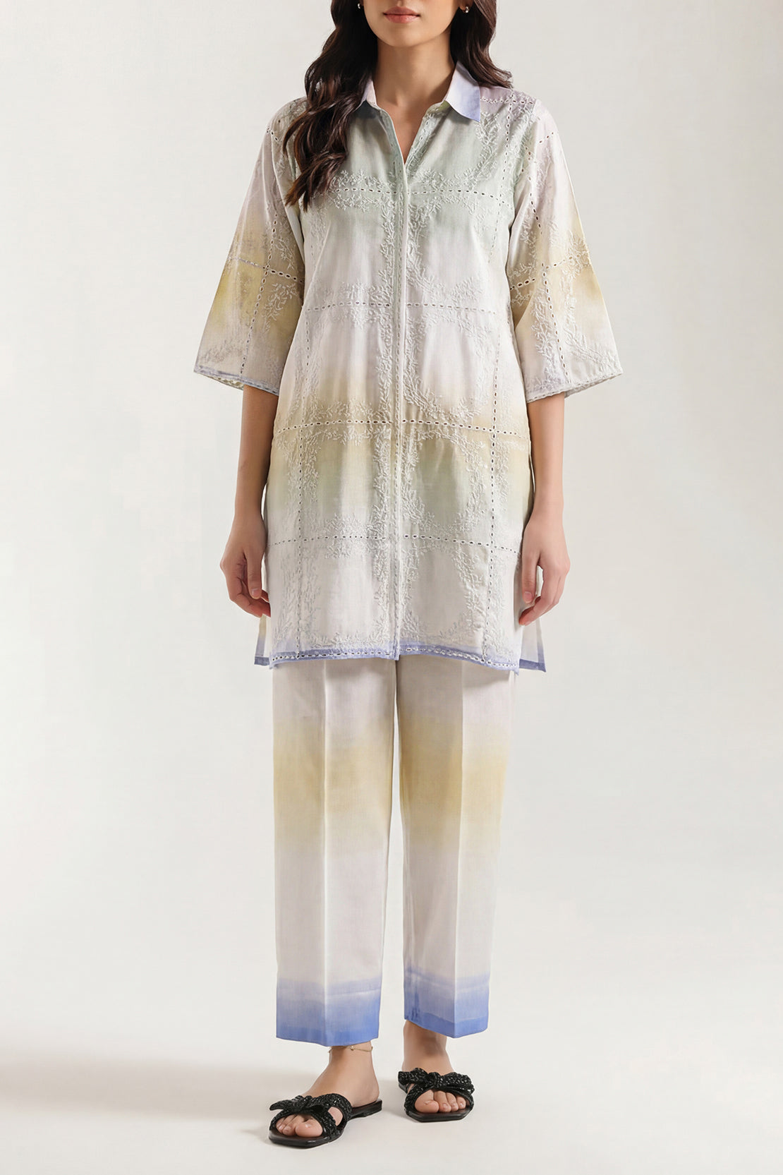 Elevate Your Summer Wardrobe With This Elegant Two-Piece From SAYA, Crafted In Lawn Fabric Renowned For Its Lightweight Feel, Smooth Texture, And Breathable Comfort. The Shirt Showcases A Refined Arabic-Inspired Print Enhanced With Delicate Embroidery, Adding Depth And Sophistication To The Overall Design. Expert Stitching Ensures A Polished, Ready-To-Wear Finish While Maintaining Ease And Comfort. The Matching Trouser Complements Perfectly With Clean Tailoring And A Soft Fall, Creating A Harmonious And Graceful Look. Ideal For Daytime Festivities, Semi-Formal Gatherings, Or Stylish Everyday Wear, This Set Blends Cultural Aesthetics, Quality Craftsmanship, And Modern Fashion Appeal.