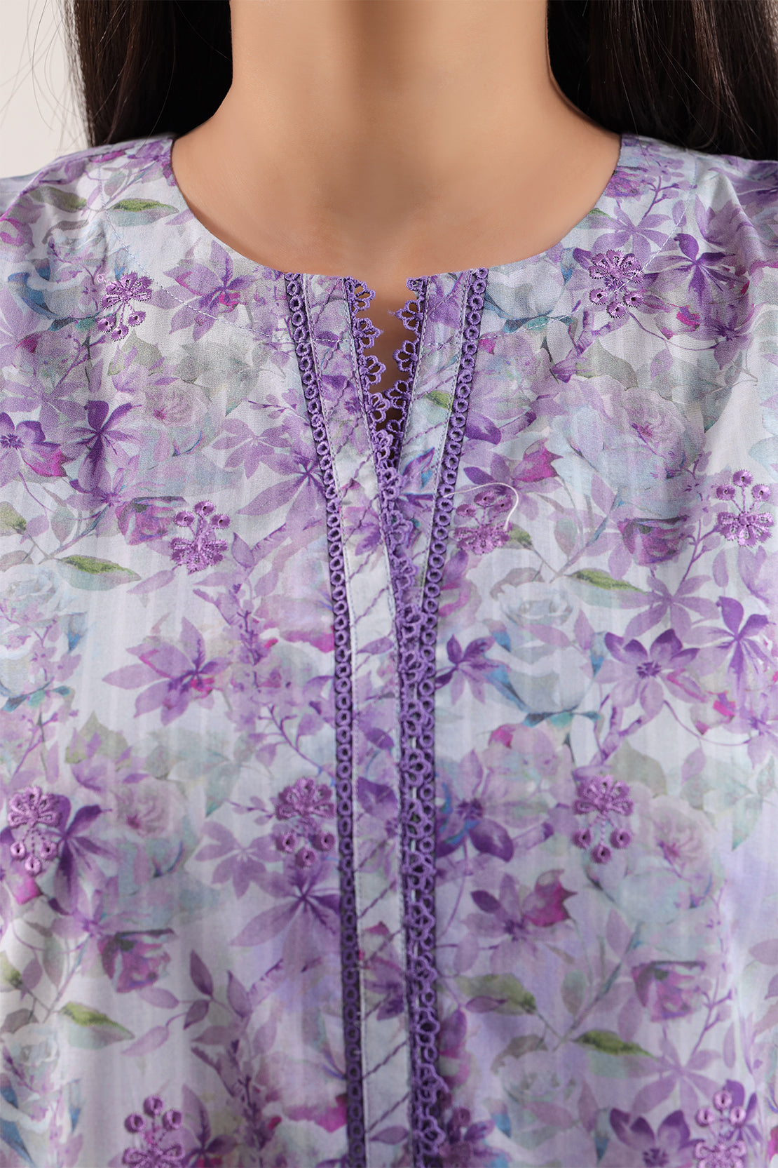 Printed Embroidered Self Strip Lawn Stitched 2 Piece (Shirt/Trouser)