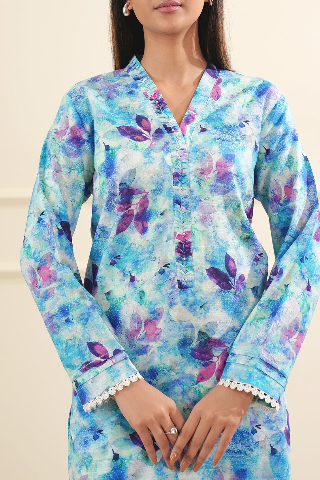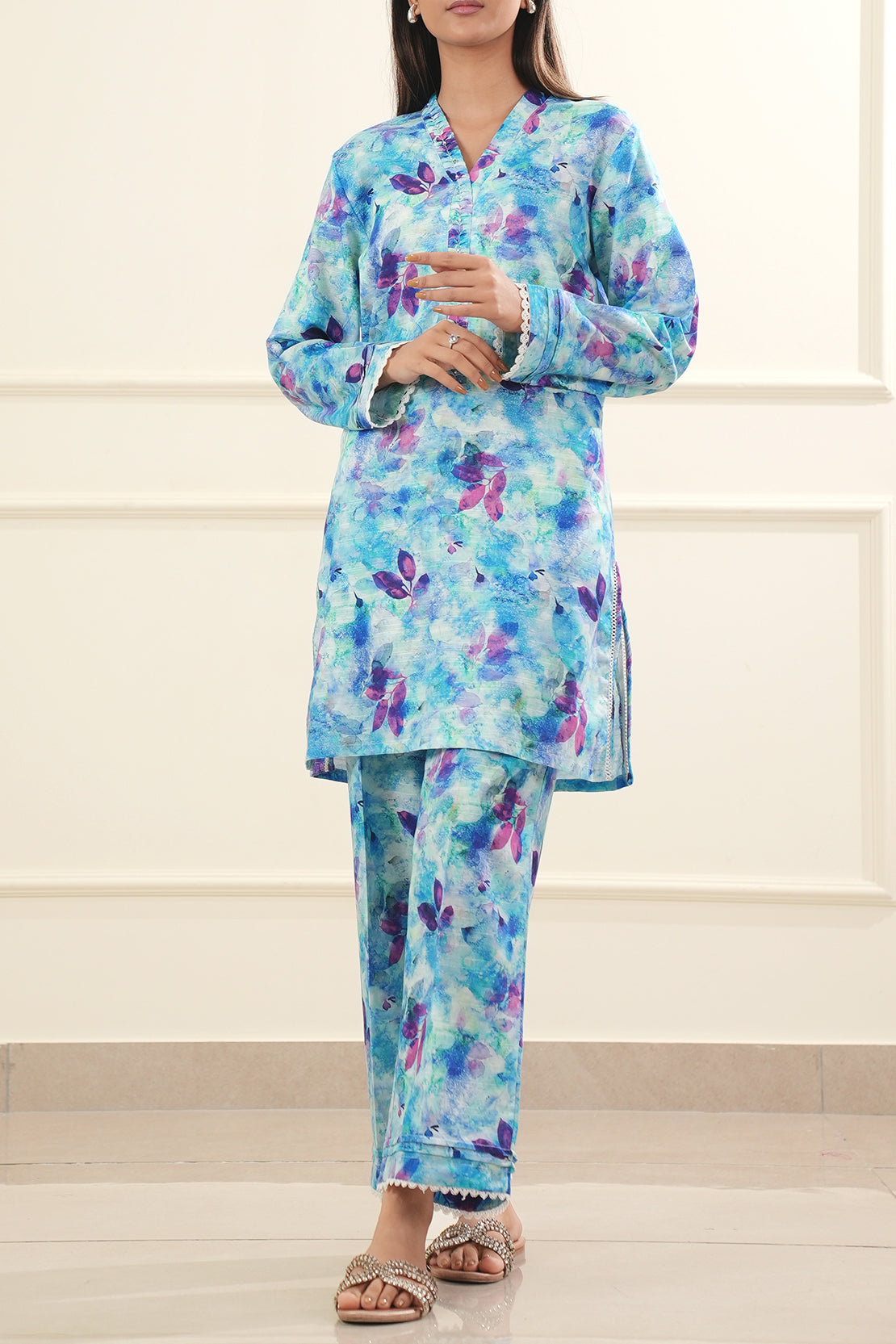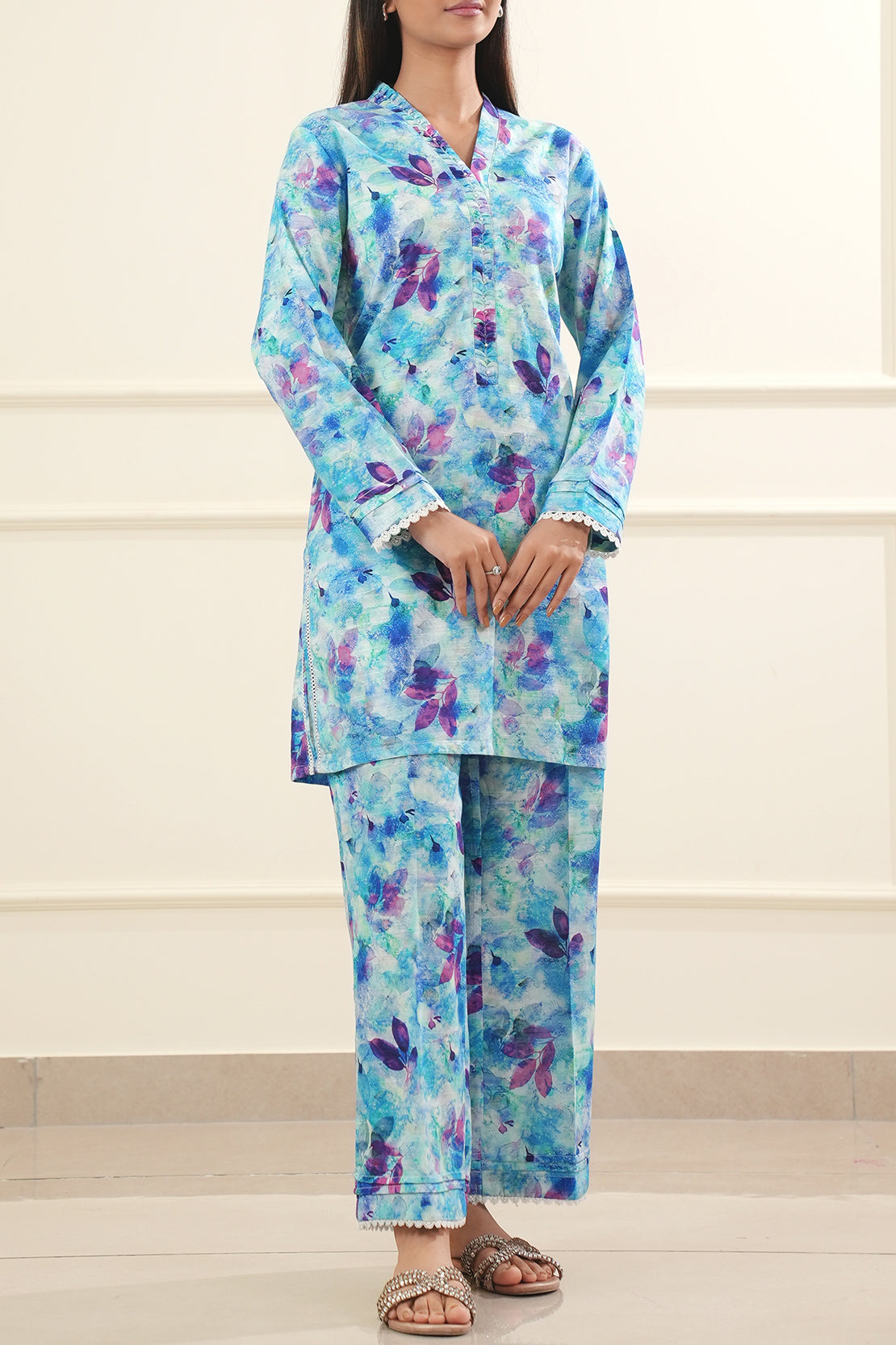 Refresh your wardrobe with this Printed Cotton Viscose Stitched 2-Piece from Saya. Crafted from breathable cotton viscose, it features a beautifully printed shirt paired with a matching trouser—perfect for everyday elegance and comfort. A versatile pick for casual outings or daytime wear.