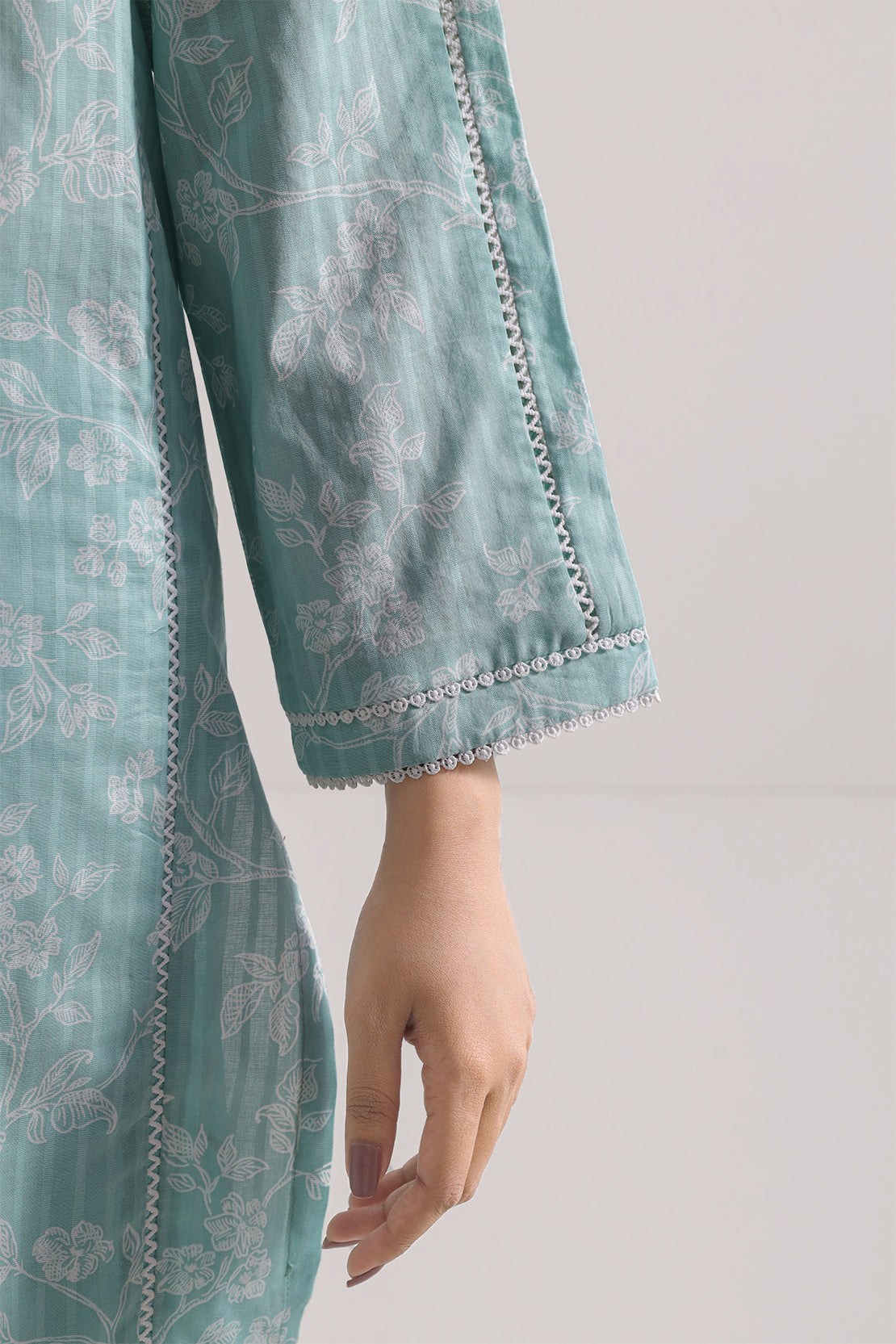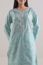 Cyan Printed Lawn Two-Piece Set By SAYA Features A Lightweight Lawn Shirt With Full Print And A Comfortable Stitched Trouser. Shirt Offers Breathable Fabric And A Relaxed Fit While Maintaining Stylish Appeal With Vibrant Cyan Pattern. Trouser Complements With Clean Tailoring And Ready-To-Wear Comfort. Perfect For Daytime Events, Casual Outings Or Warm Climates Where Light, Fashionable Comfort Is Desired.