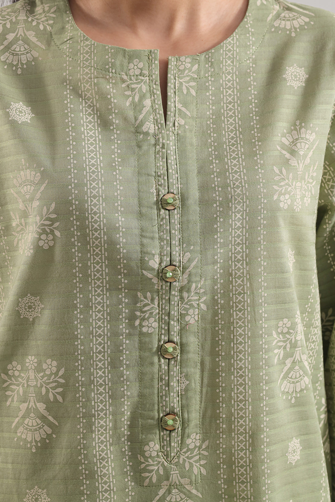 Printed Lawn Stitched 2-Piece (Shirt & Trouser) By SAYA Crafted From Ultra-Light Lawn Fabric That Ensures Breathability And A Soft, Airy Feel. The Green Base Enlivened With Delicate Prints Offers A Fresh, Elegant Look — Perfect For Daytime Celebrations, Garden Events Or Stylish Casual Outings. Expertly Tailored With Clean Seams, Comfortable Cuts, And Fine Finishes, This Coordinated Set Blends Practicality And Style Seamlessly. A Versatile Ensemble That Elevates Your Wardrobe With Poise And Grace.
