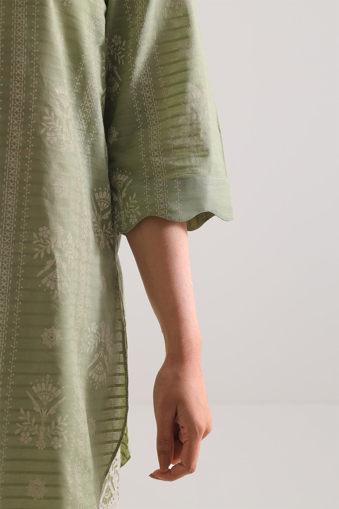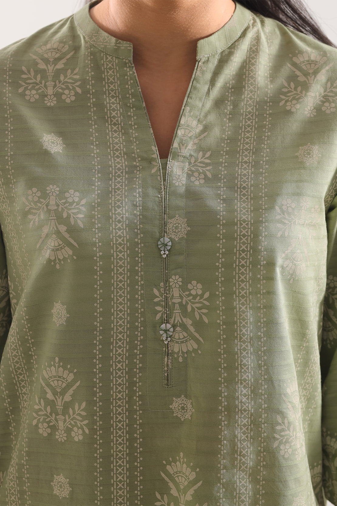 Printed Lawn Stitched Two-Piece (Shirt & Trouser) By SAYA, Crafted In Soft, Lightweight Lawn Fabric That Delivers Breathable Comfort Even In Warmer Climates. The Shirt Features A Rich Green Base With Seasonal Print Accents, Combined With A Coordinated Trouser To Complete A Polished Look. Ready-To-Wear With Fine Stitching, Clean Hemlines, And Elegant Tailoring That Balances Ease With Style, It’s Ideal For Daytime Events, Casual Gatherings Or Smart Weekend Wear. A Versatile Ensemble That Brings Together Print, Comfort, And Effortless Cohesion.