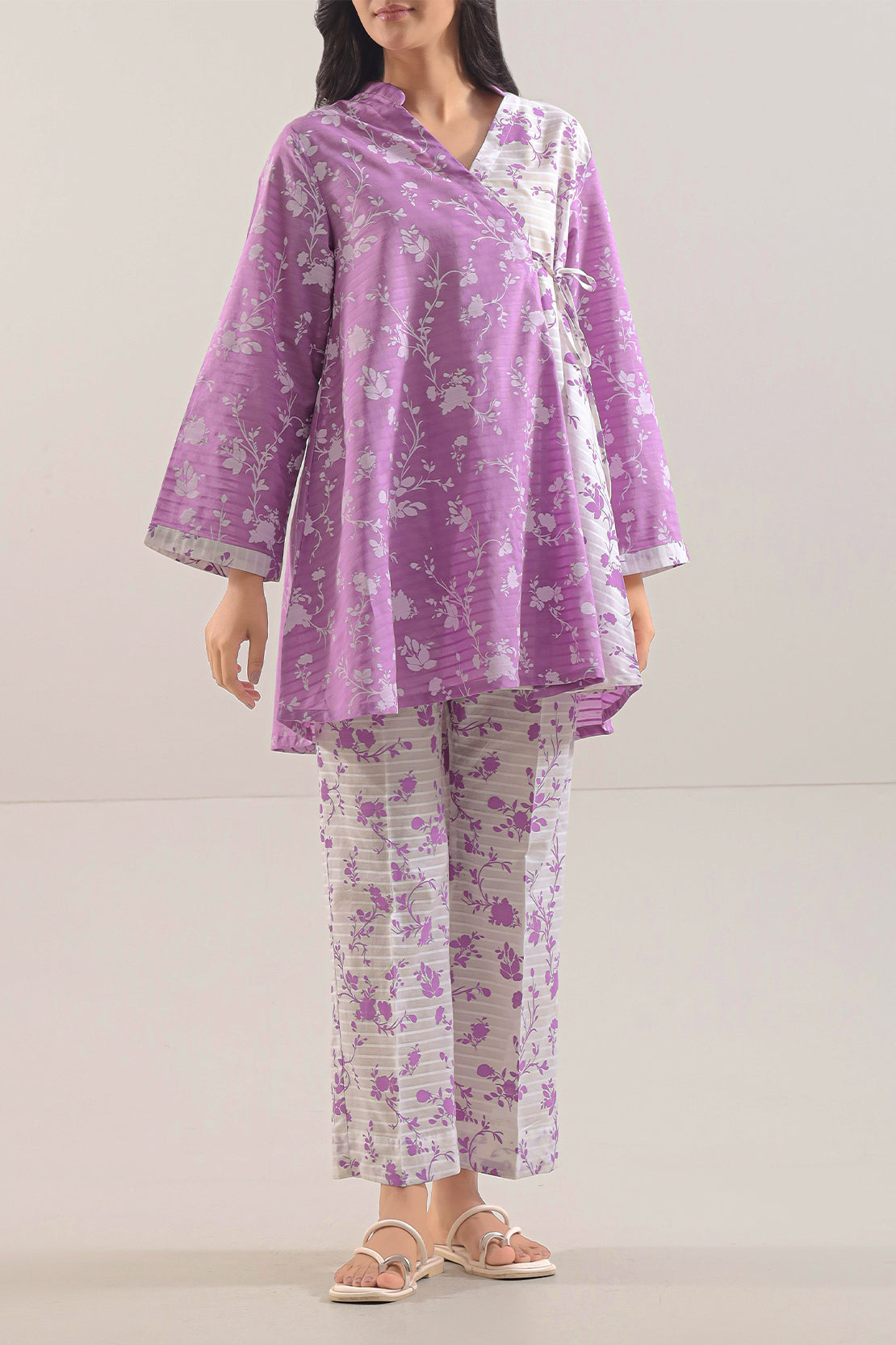 Printed Lawn Stitched 2-Piece By SAYA Glows In A Soft Purple Tone. Made From Lightweight, Breathable Lawn Fabric With An Elegant All-Over Print, It Feels Gentle On The Skin And Moves Gracefully. The Shirt Is Ready-To-Wear With Clean Tailoring And A Neat Collar, While The Matching Trouser Offers Structure And Ease. Perfect For Daytime Gatherings, Casual Outings, Or Warm-Weather Elegance.