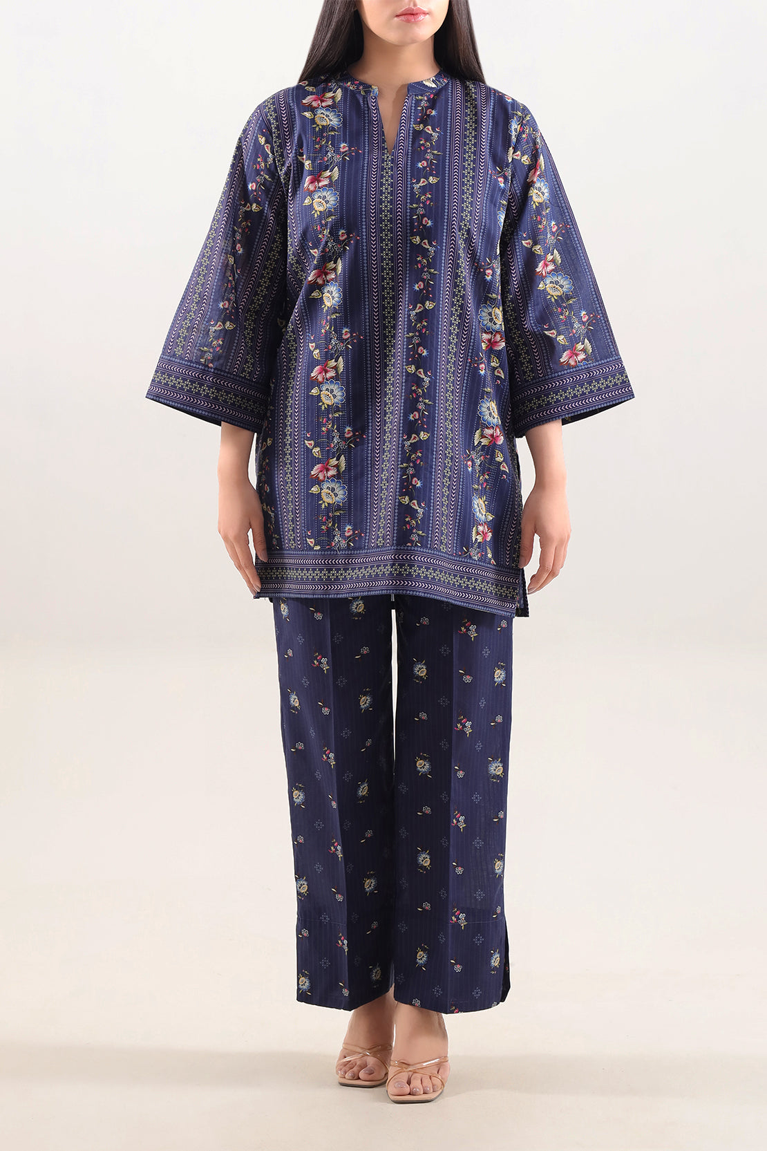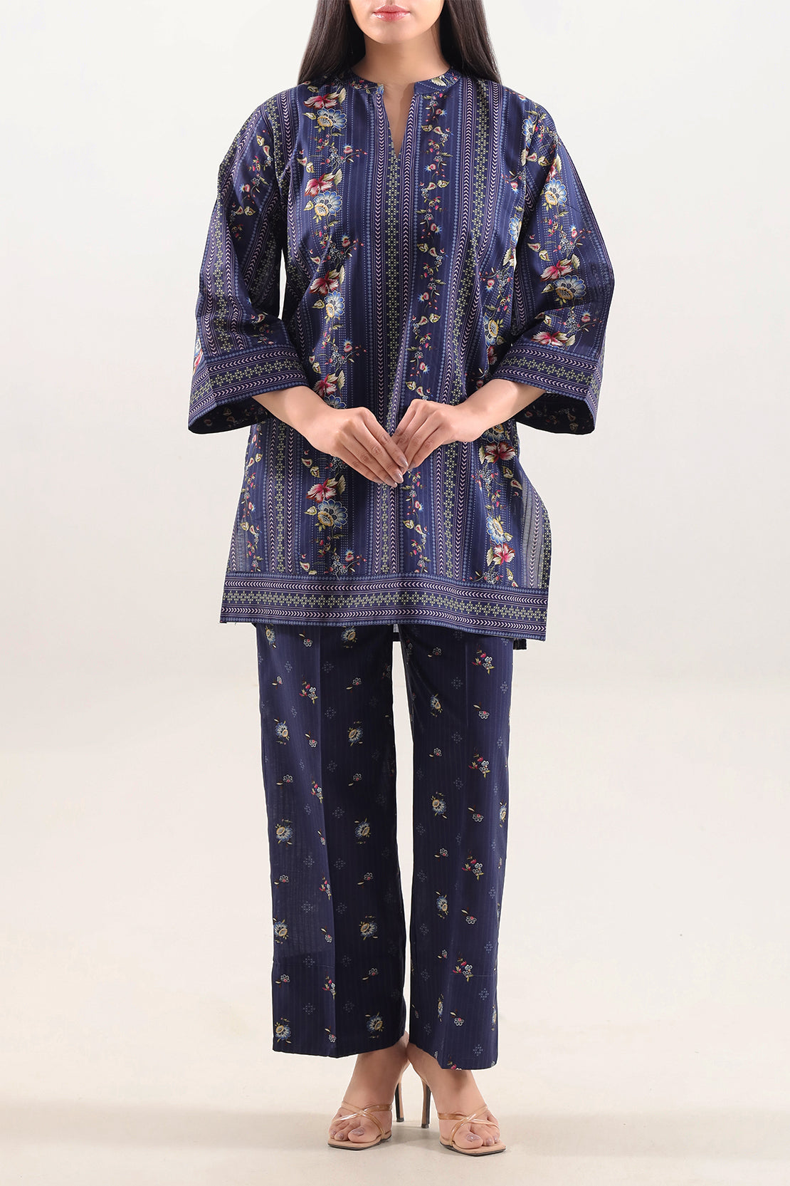 SAYA Printed Lawn Stitched 2-Piece Is Crafted From Premium Lawn — A Feather-Light, Breathable Fabric With A Soft, Smooth Texture. The Ready-Made Shirt Features A Stylish Printed Pattern, While The Coordinated Trouser Ensures Ease Of Movement And All-Day Comfort. Perfect For Warm Weather, Casual Outings, Or Easy Everyday Style.