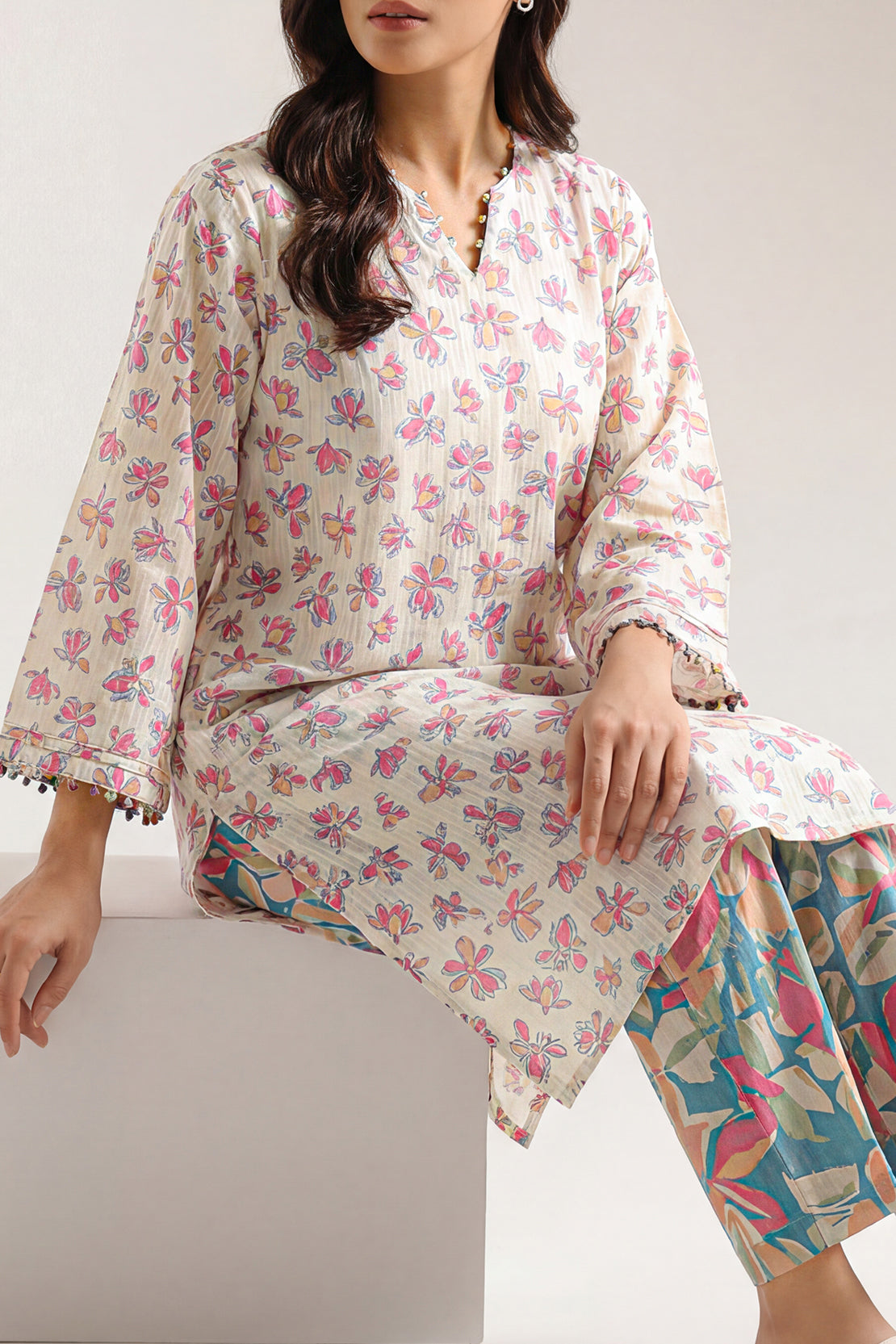 SAYA's Printed Lawn Stitched Two-Piece Set Features A Vibrant, All-Over Design On Feather-Light, Breathable Fabric. Expertly Tailored For A Ready-To-Wear Fit, This Coordinated Ensemble Delivers Effortless Summer Style. Perfect For Casual Outings, Garden Parties, And Daytime Events, It Offers Unparalleled Softness, Breathtaking Comfort, And Modern, Versatile Elegance For Warm-Weather Wear.
