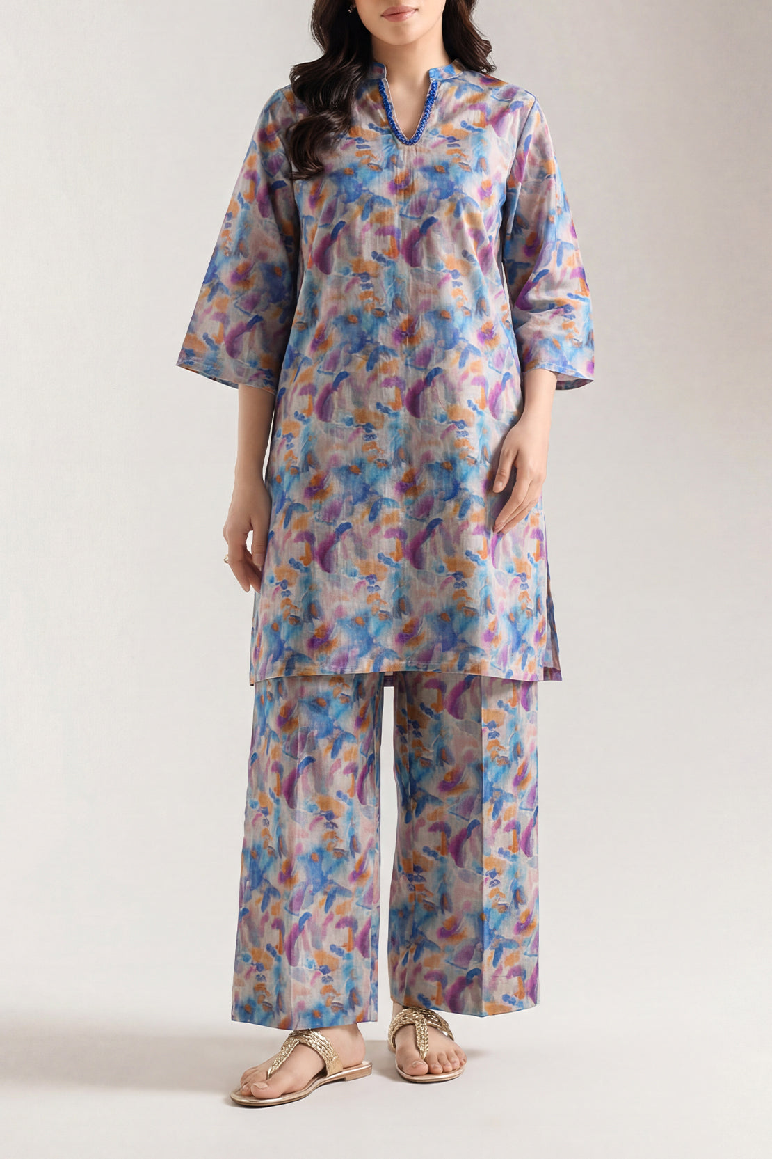 Printed Self Strip Lawn Stitched 2 Piece (Shirt/Trouser)