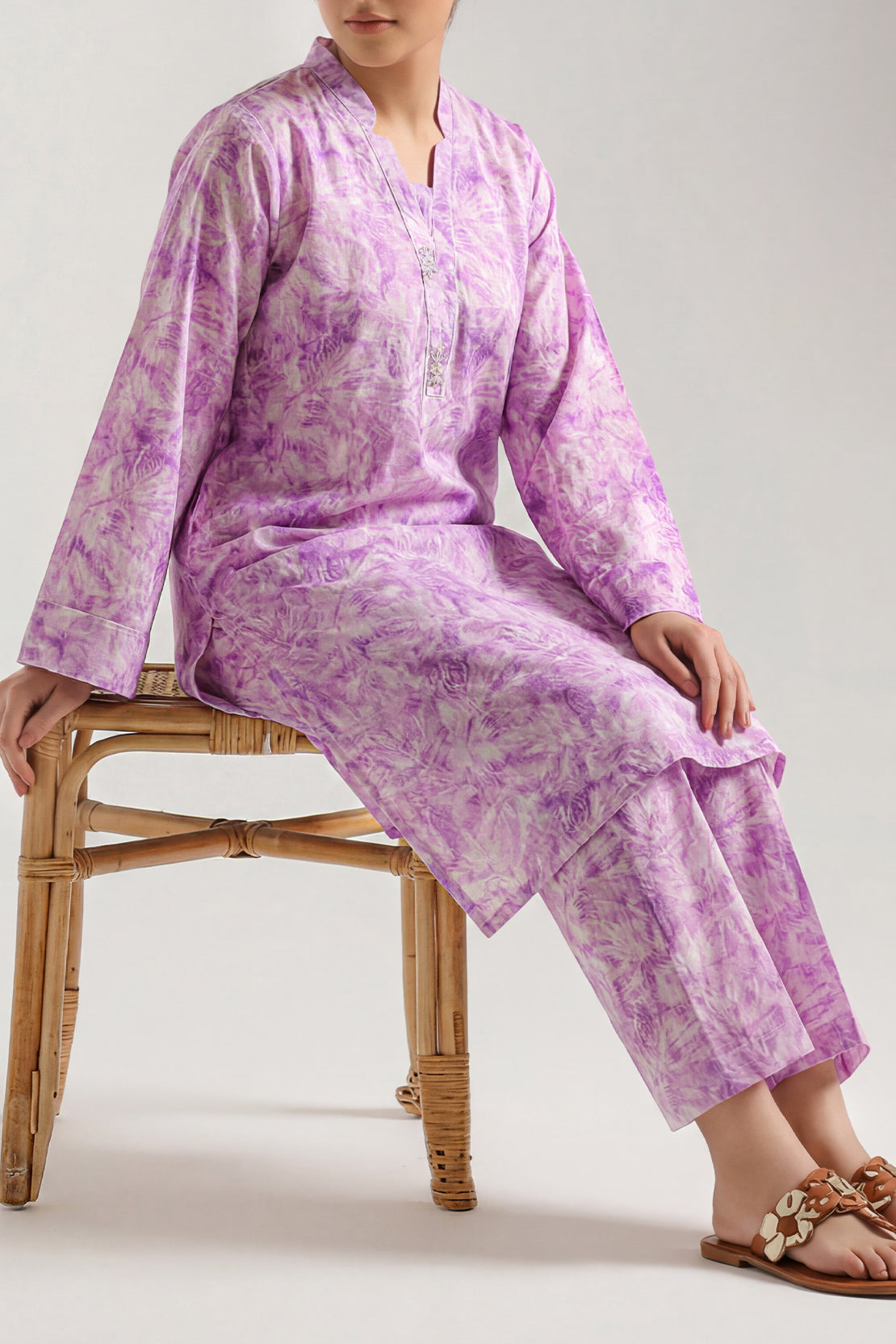 SAYA Printed Self-Stripe Lawn Stitched 2-Piece Shirt & Trouser Is Crafted From Feather-Light Lawn Known For Its Breathability And Soft Hand Feel. The Shirt Showcases A Subtle Self-Stripe Print That Adds Refined Visual Interest, While The Trouser Offers Comfortable Wear And Easy Movement — Ideal For Warm-Weather Daywear, Casual Outings, Or Smart-Casual Summer Looks.