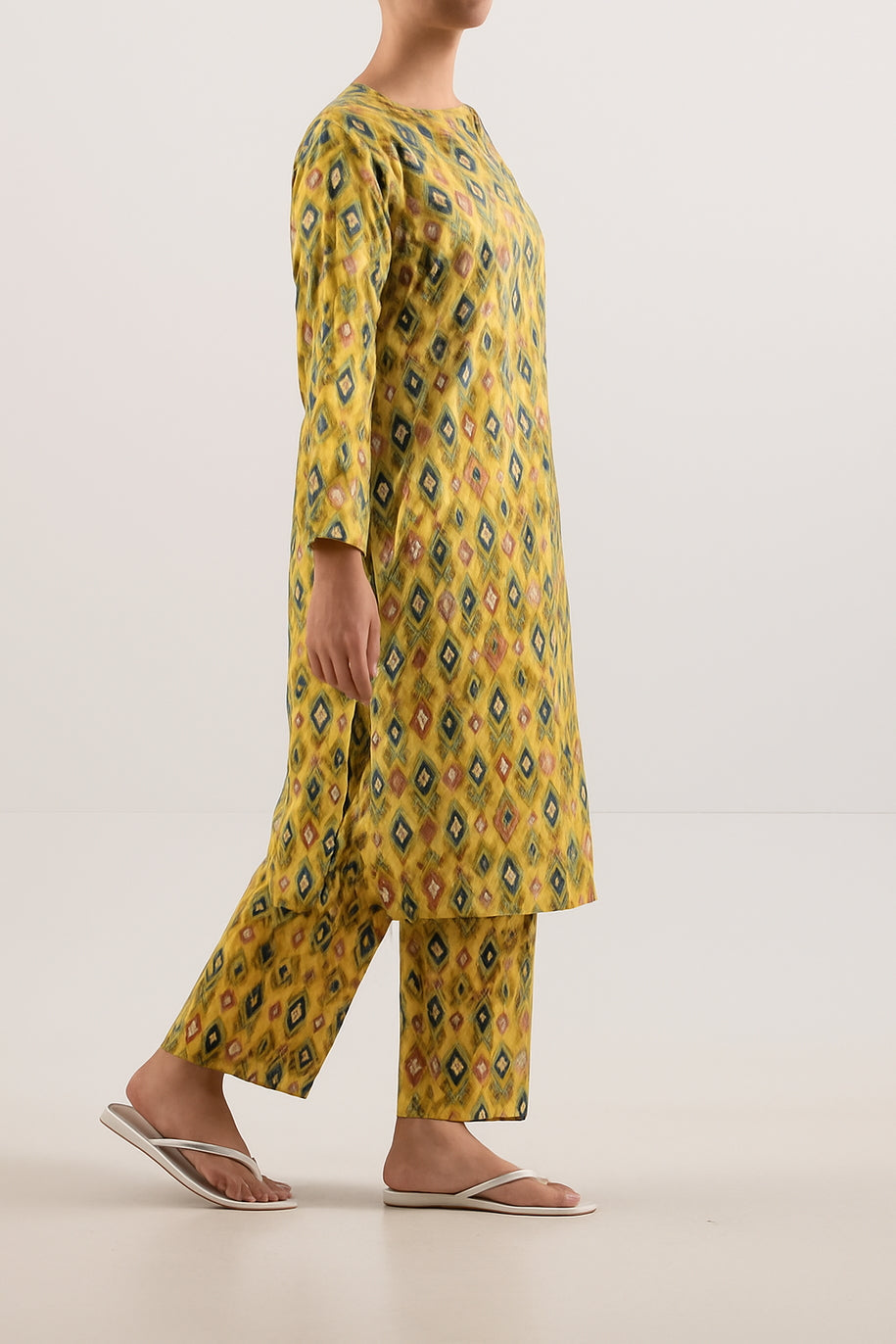 Add A Modern Edge To Your Wardrobe With This Printed Strip Lawn Stitched 2-Piece Shirt Trouser Set From SAYA. Crafted From Lightweight Lawn Fabric, The Shirt Features Contemporary Striped Prints That Offer A Sleek, Elongated Look. Paired With A Coordinated Trouser, This Set Combines Breathable Comfort With Effortless Style. Ideal For Daywear, Casual Meetups, Or Laid-Back Summer Outings, It’s A Chic Essential That Brings Print And Pattern Into Everyday Dressing.