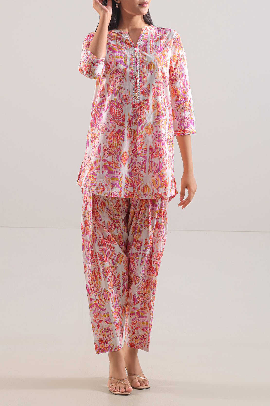 Pink Printed Strip Lawn Two-Piece From SAYA Includes Ready-To-Wear Shirt And Trouser In Lightweight Lawn Fabric. Shirt Features Stylish Stripe Print And Clean Tailoring, While Trouser Offers Comfortable Fit. Breathable Material Makes It Perfect For Day Outings, Casual Events Or Everyday Looks With Coordinated Style.