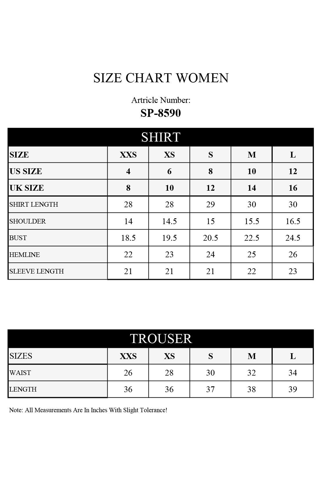 | Sleeve Length | 0.25 | 21 | 21 | 22 | 22 | 23 |