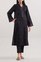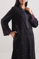 Black Solid Embroidered Cotton Two-Piece From SAYA Includes A Ready-To-Wear Shirt And Trouser In Premium Cotton Fabric. Shirt Features Subtle Embroidery Detail On A Solid Black Base With Clean Tailoring And Classic Collar. Trouser Matches With Sleek Stitching And Comfortable Fit. Ideal For Evening Outings, Formal Events Or When You Want A Polished Look With Minimal Fuss.