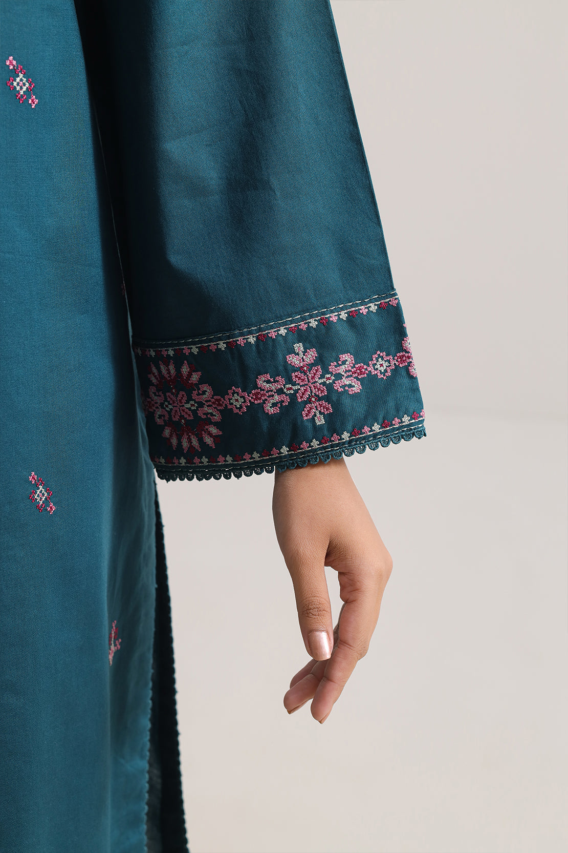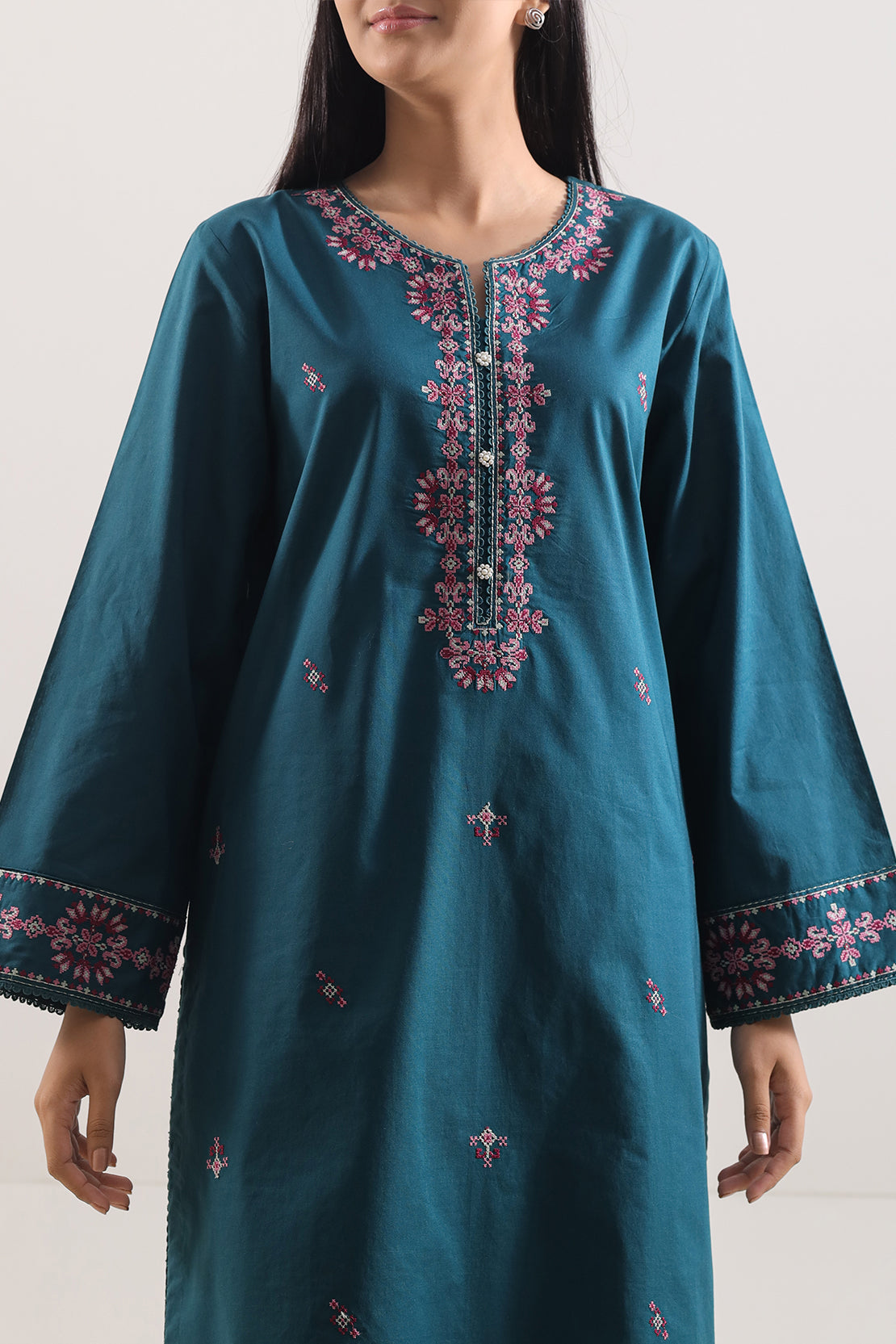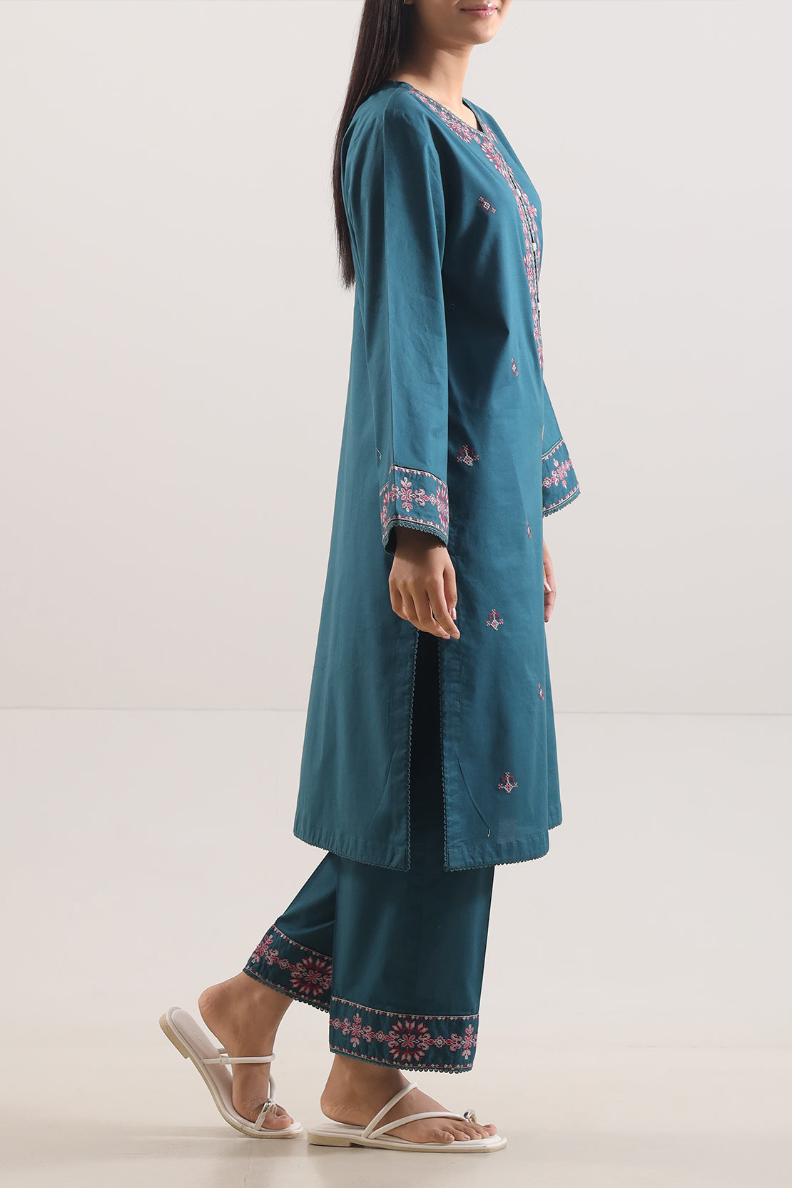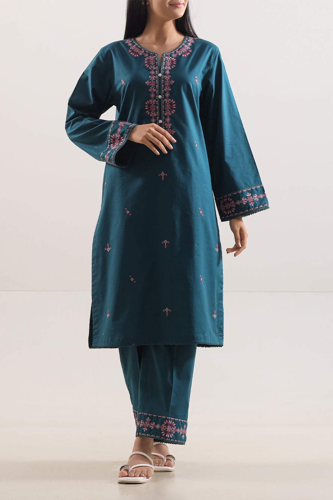 Solid Embroidered Cotton Stitched 2 Piece (Shirt/Trouser)