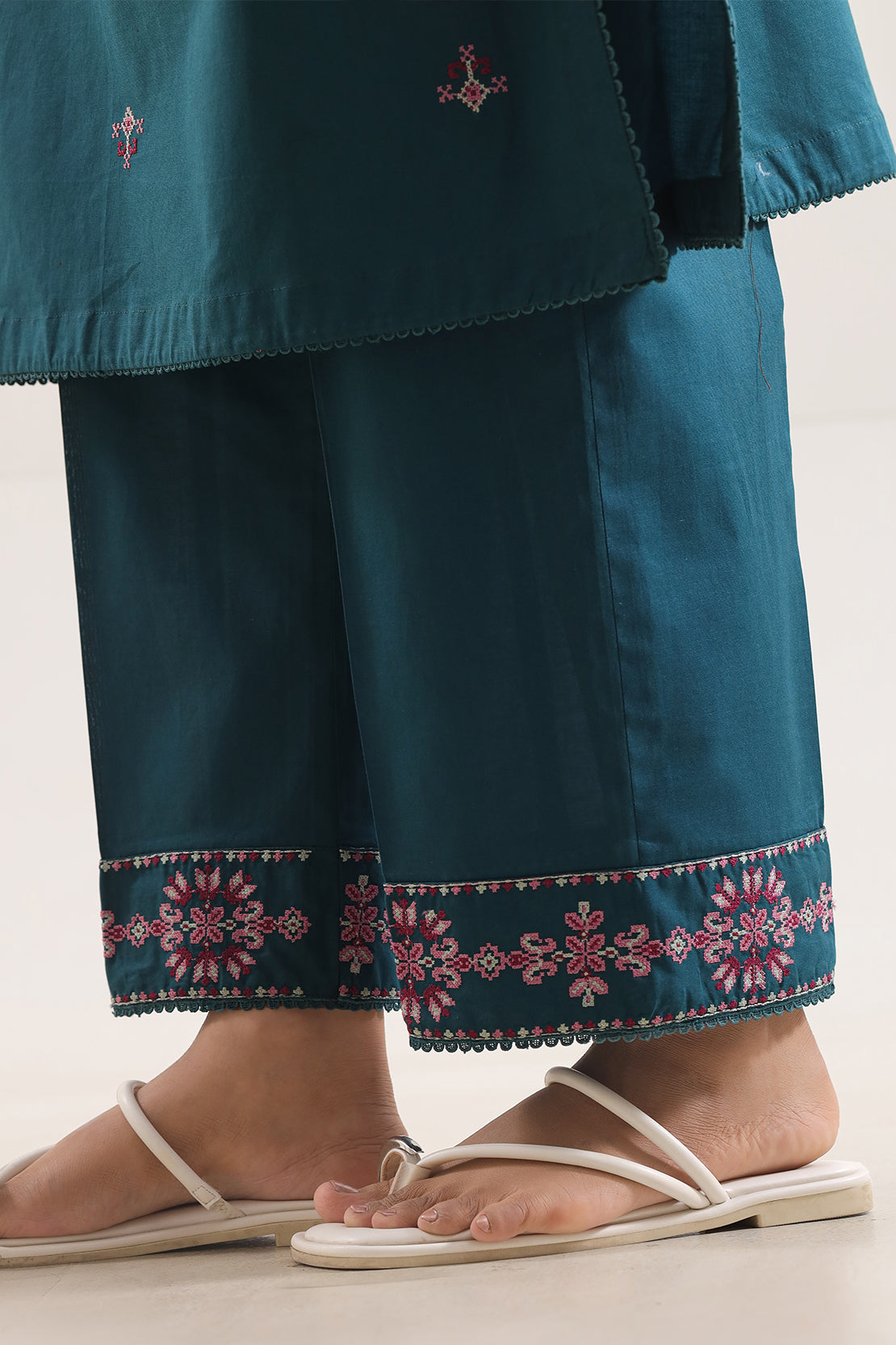 Crafted From Premium, Breathable Cotton, This Ensemble Marries Subtle Elegance With Everyday Comfort. The Shirt Features Intricate Tonal Embroidery That Adds Sophisticated Detailing Without Overpowering Simplicity. Expert Stitching Enhances The Silhouette With Clean Lines And A Refined Finish, While The Coordinated Trouser Delivers A Sleek, Ready-To-Wear Fit. Perfect For Casual Workdays, Weekend Gatherings, Or Smart Everyday Dressing, This Set Embodies SAYA’s Commitment To Understated Grace And Functional Style.