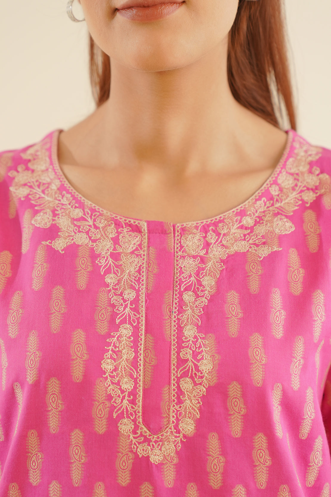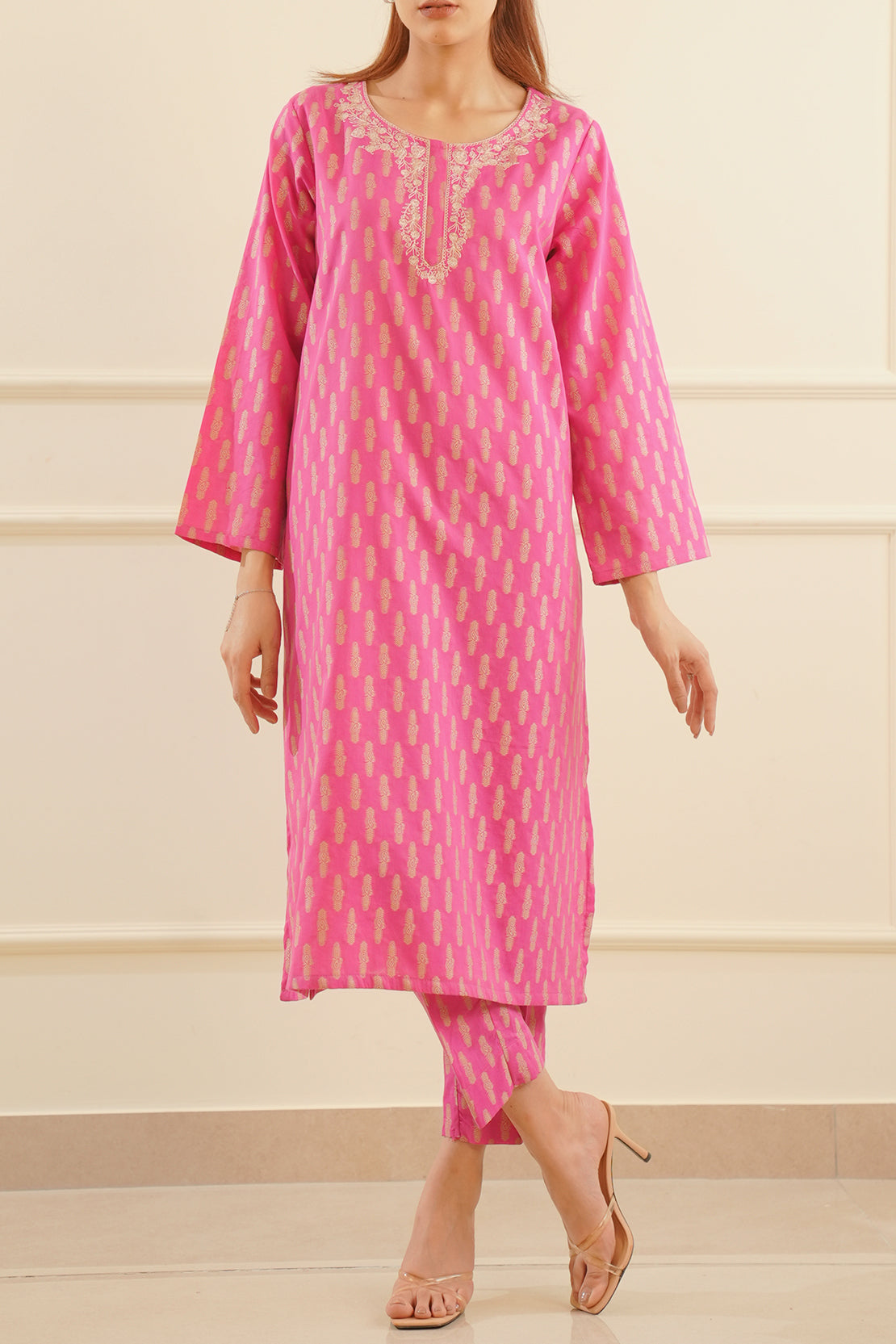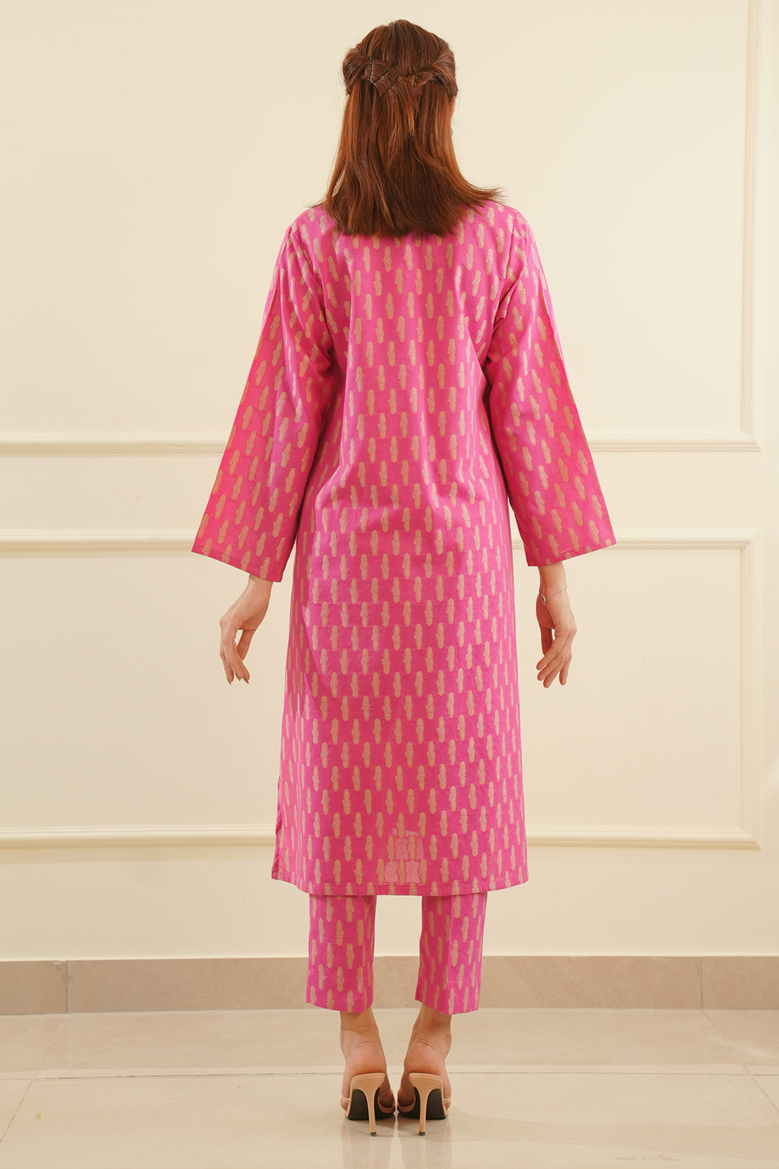 Elevate your wardrobe with Saya's Embroidered Cotton Jacquard Stitched 2-Piece Shirt and Trouser. This elegant ensemble features a delicately embroidered shirt and a matching cotton jacquard trouser. Ideal for semi-formal occasions, it blends sophistication and comfort effortlessly.