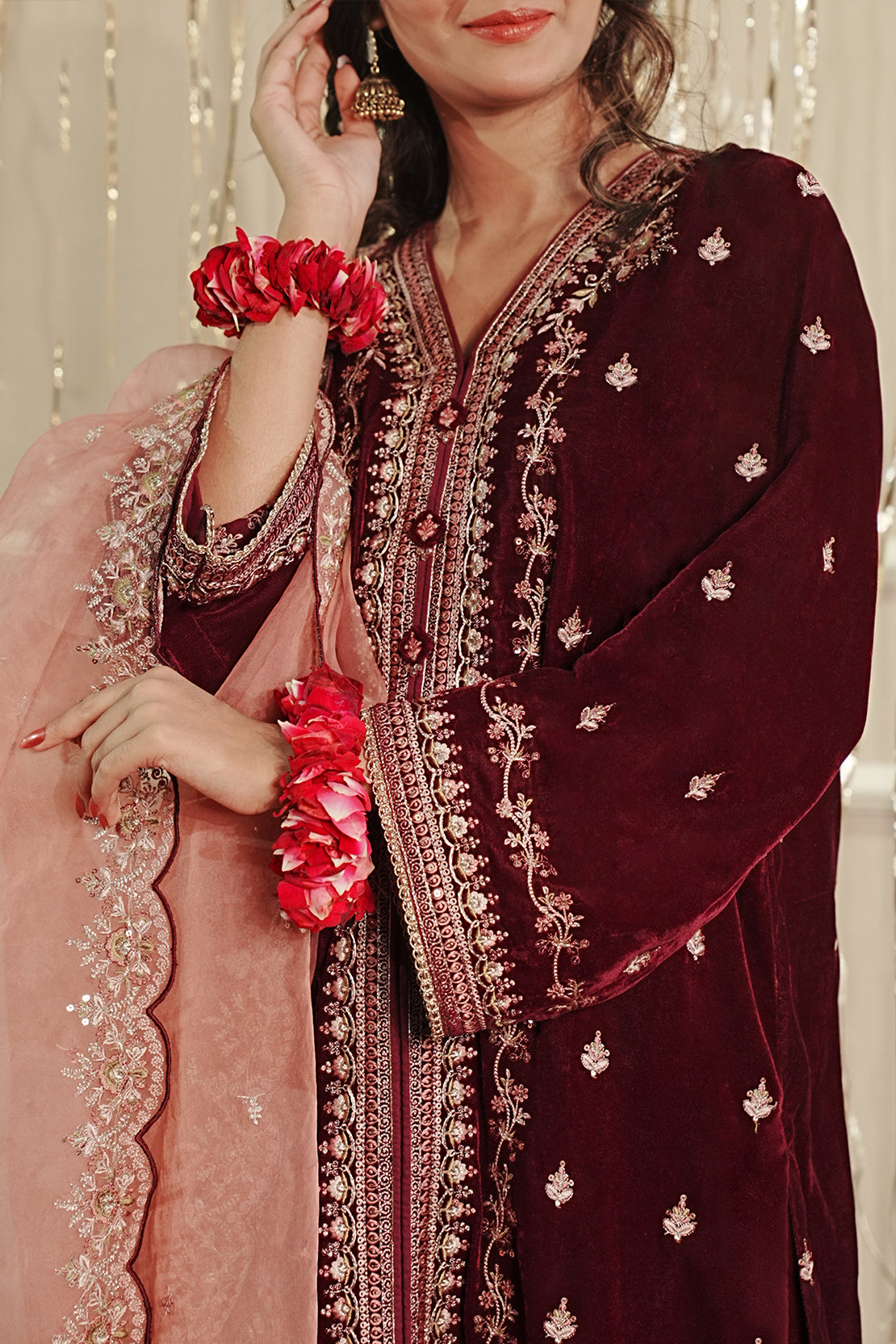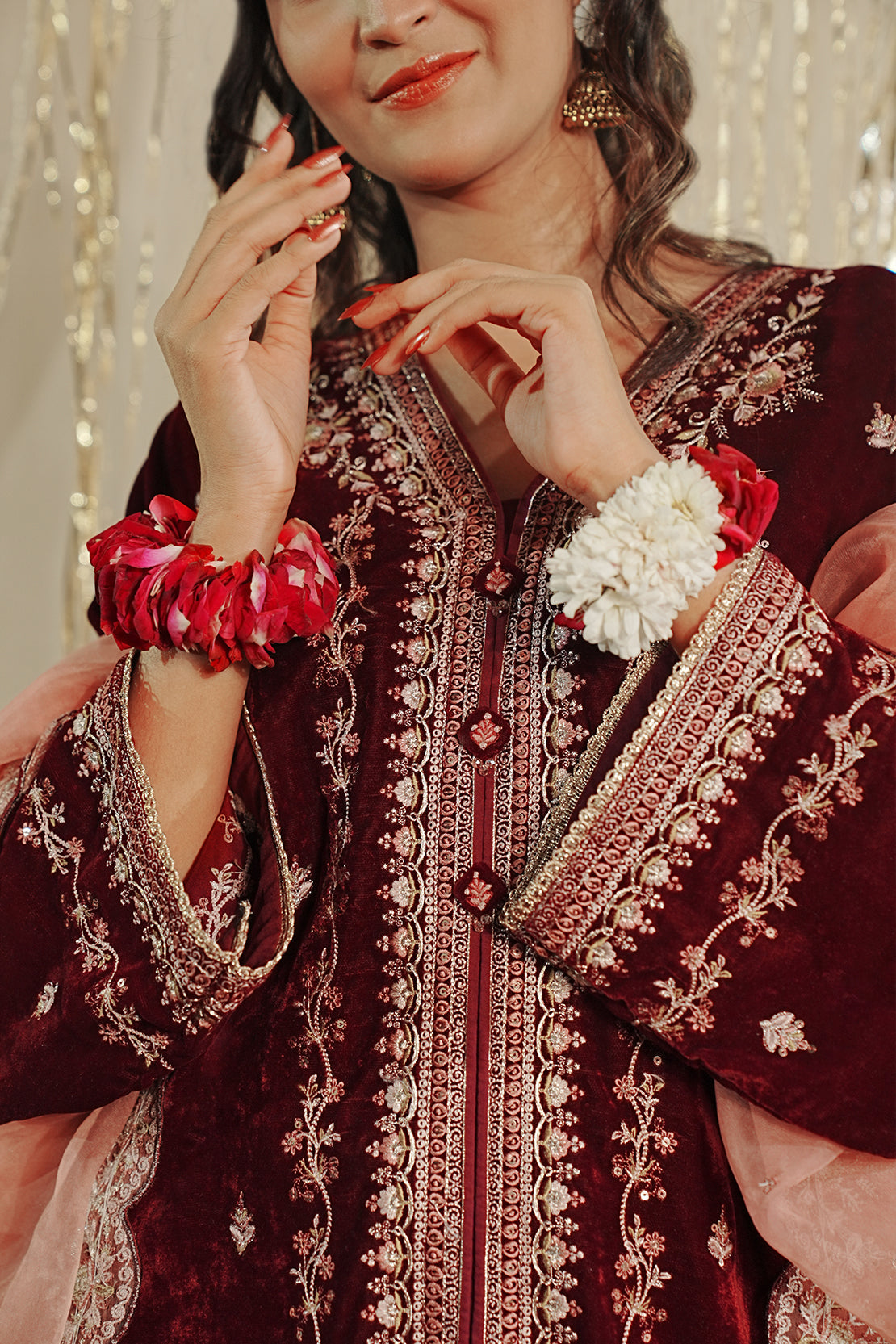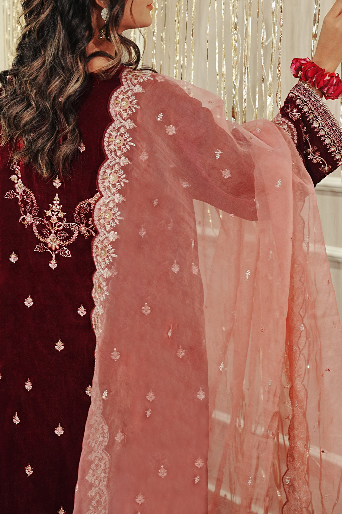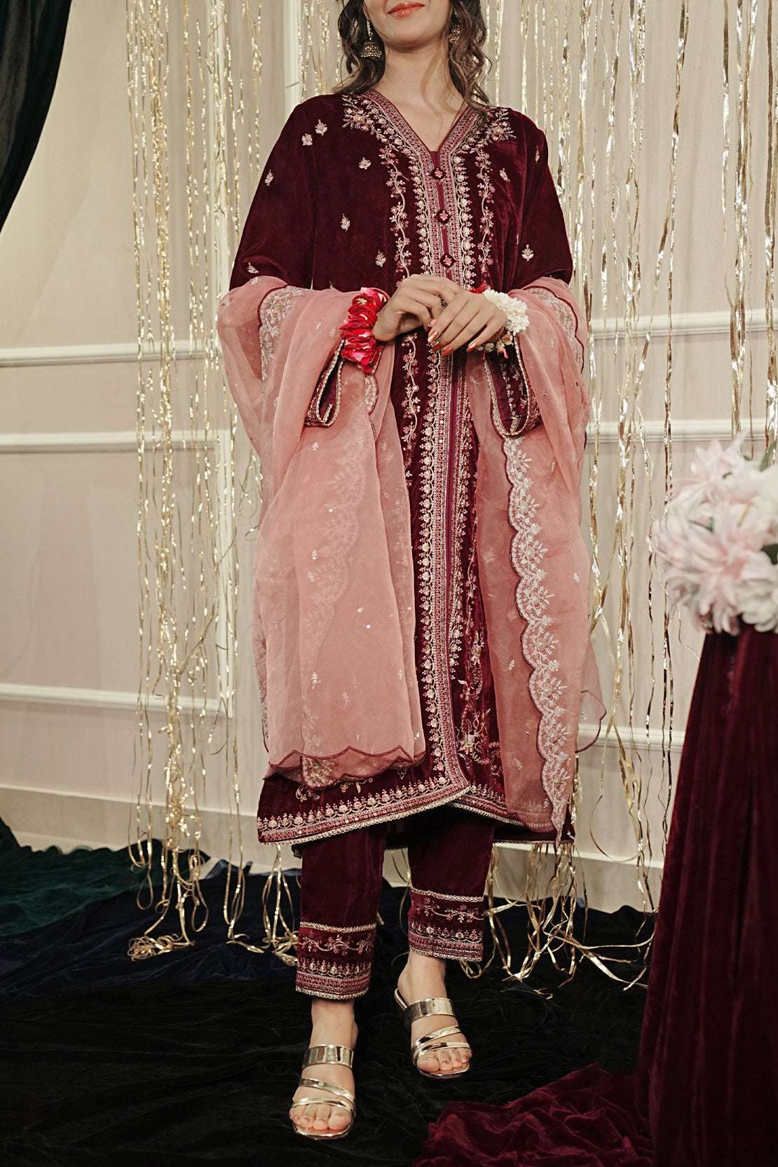Luxury Pret Embroidered Velvet Stitched 3 Piece