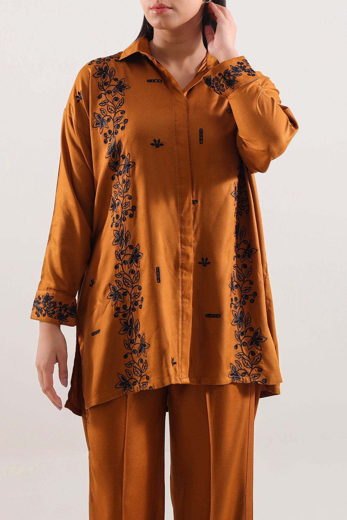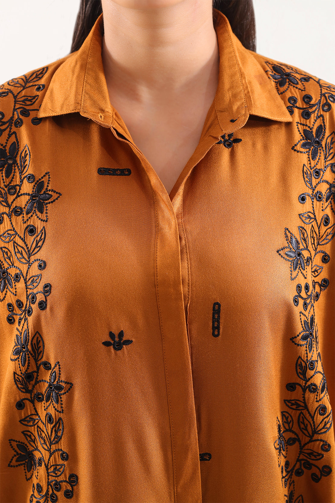 Ready To Wear Dobby Crepe Solid Embroidered Stitched Shirt.