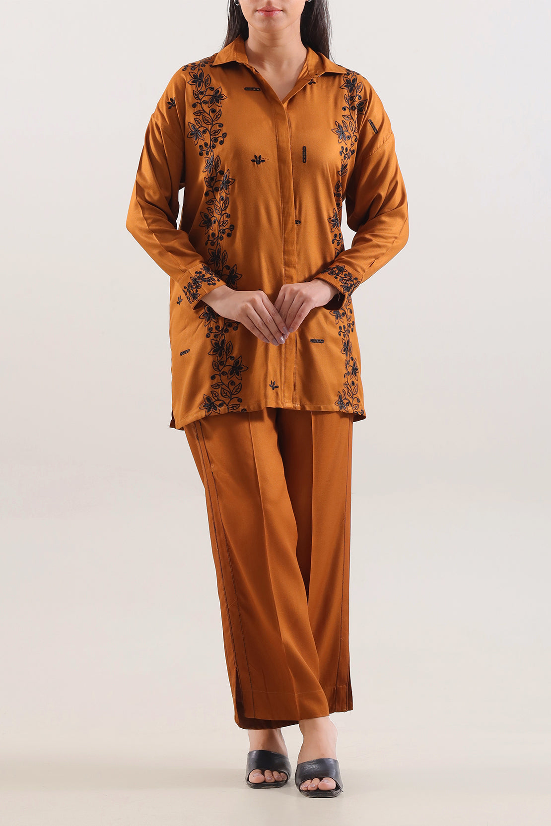 Solid Embroidered Dobby Crepe Stitched 2 Piece (Shirt/Trouser)