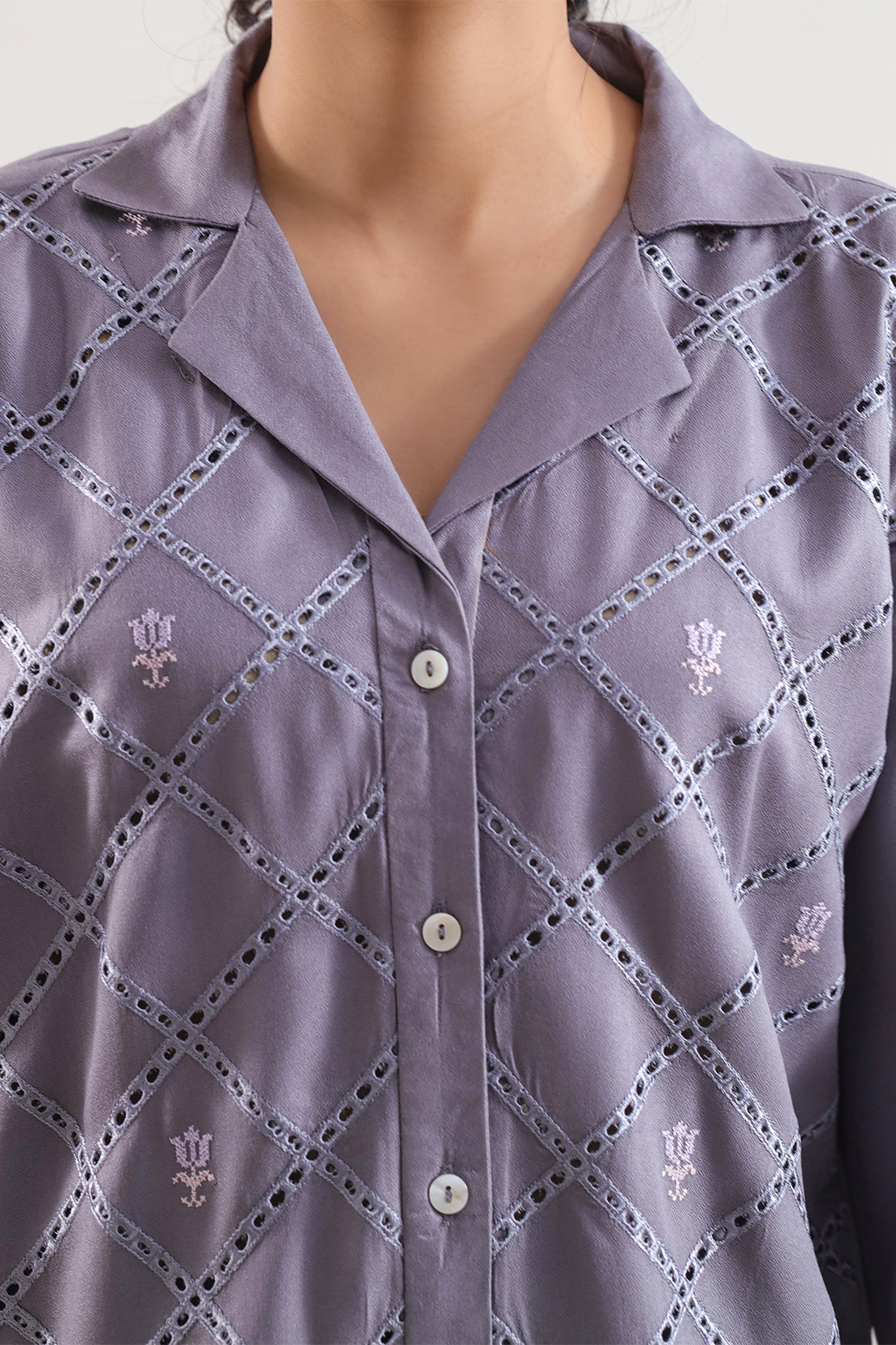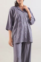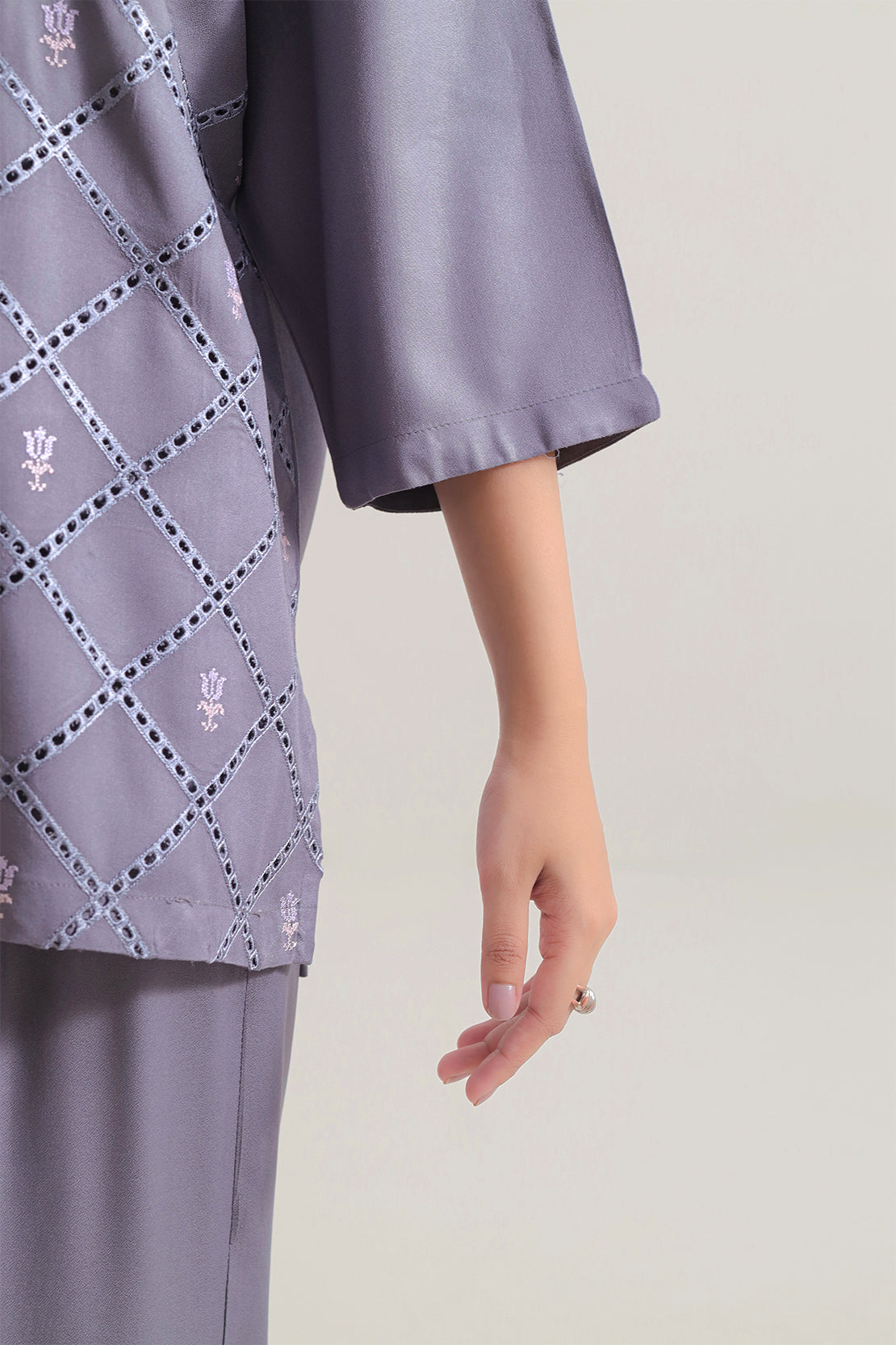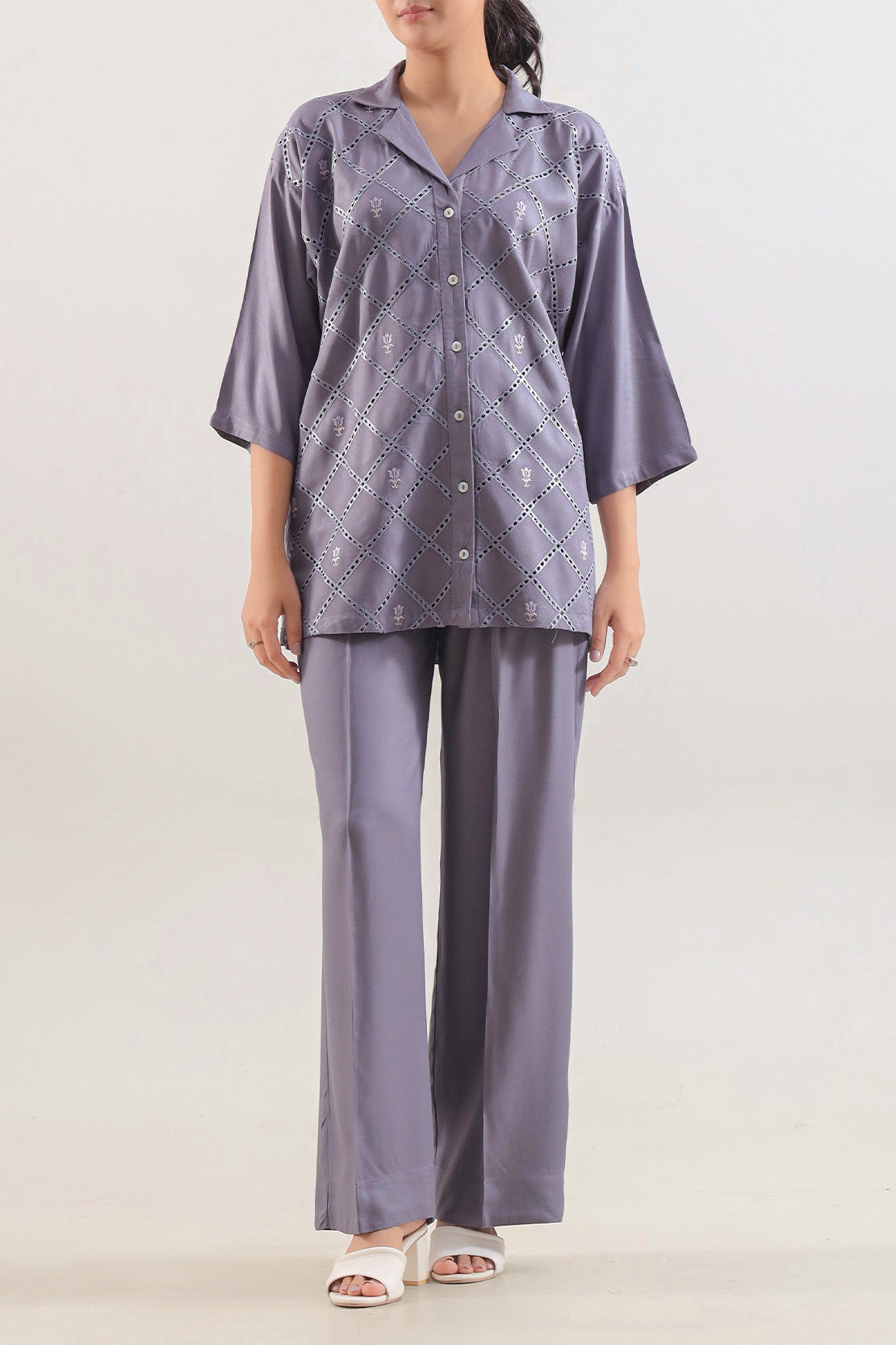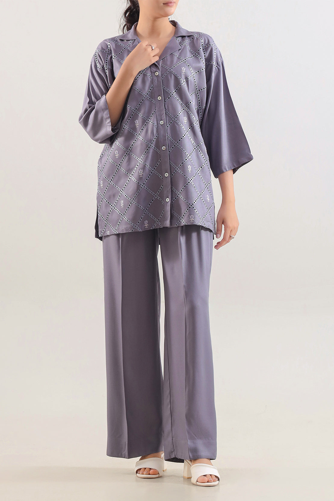 Solid Embroidered Dobby Crepe Stitched 2 Piece (Shirt/Trouser)