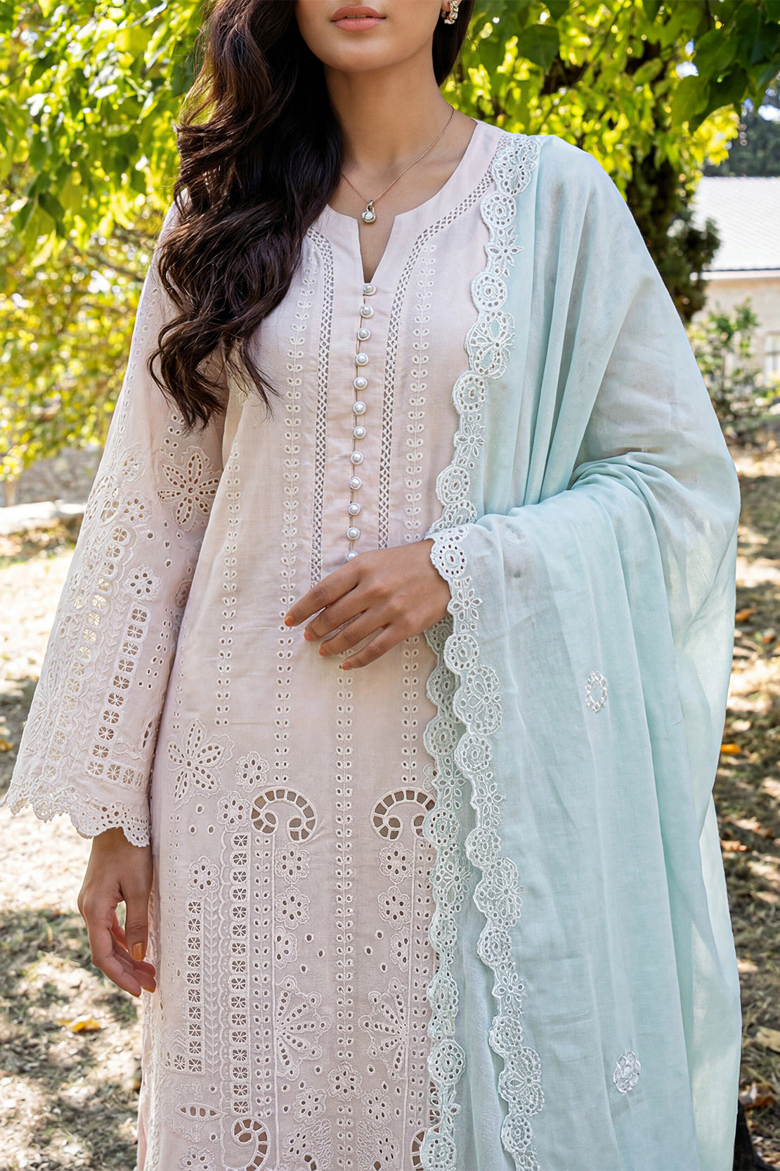 SAYA Solid Embroidered Lawn Stitched 3-Piece set is crafted from breathable lawn fabric with delicate embroidery that adds subtle texture and refined appeal. This ready-to-wear ensemble includes a stitched shirt, matching trousers, and a coordinated dupatta for a complete, elegant outfit. Lightweight and versatile, it delivers comfortable everyday wear with timeless style, perfect for casual outings and warm-weather occasions.