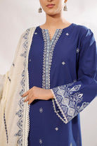 Elevate your everyday style with Saya’s Solid Embroidered Slub Cotton Stitched 3 Piece. This premium set includes an embroidered slub cotton shirt, dyed trouser, and a matching dupatta—blending texture, breathability, and elegance. Ideal for semi-formal wear, it's tailored for women looking for stitched embroidered 3-piece suits online in Pakistan.