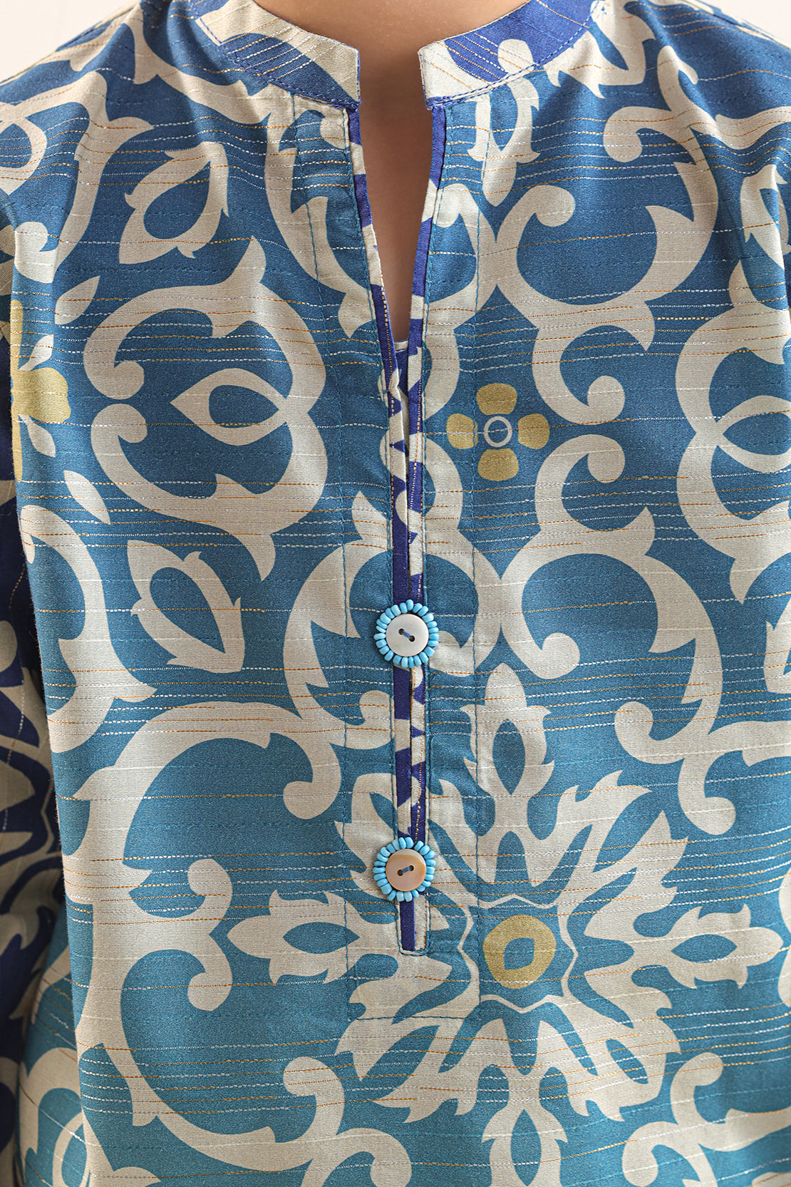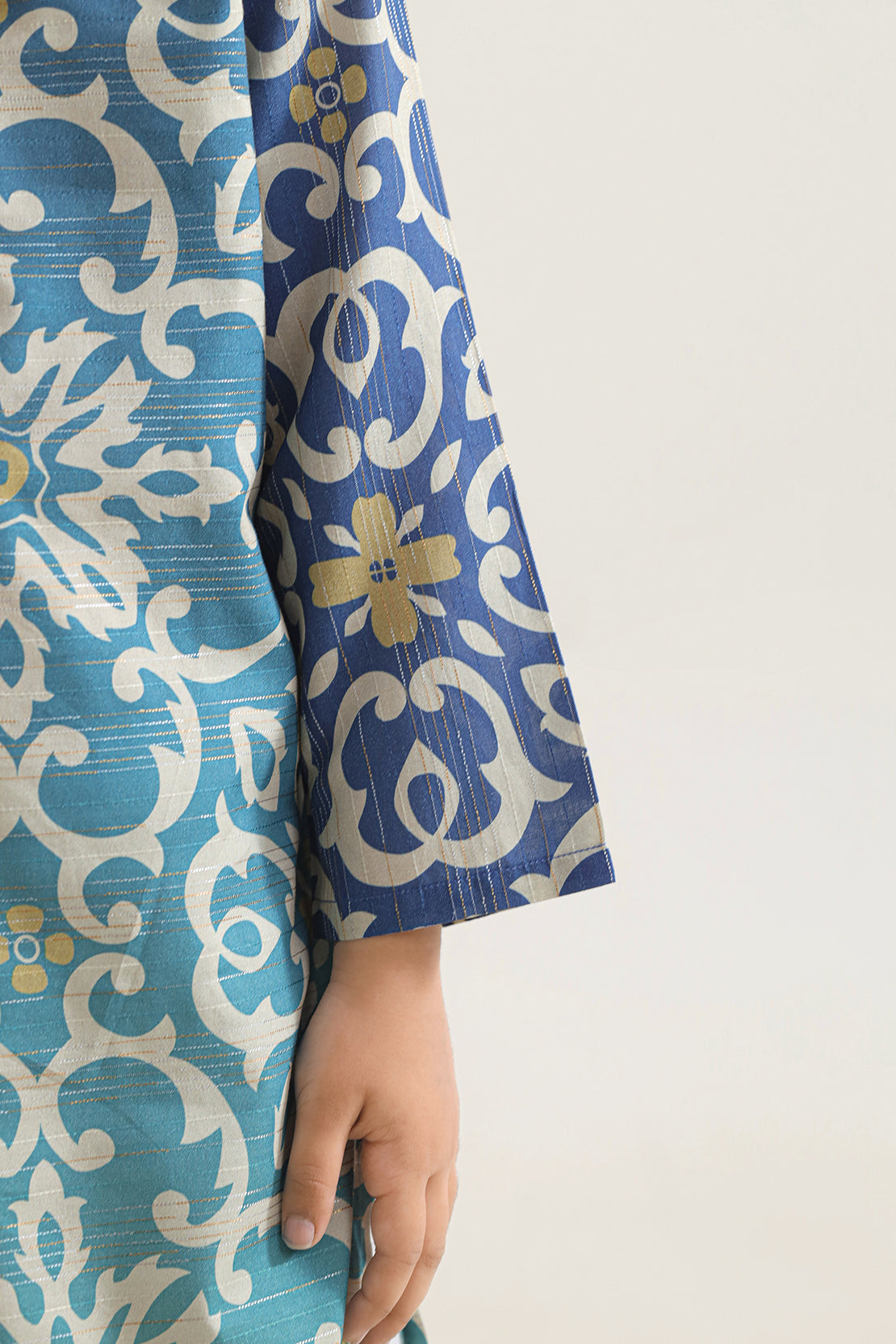 Dress Your Young One In Stylish Comfort With The SAYA Stitched Printed Arabic Linen Shirt, Crafted From Arabic Linen Fabric That Combines Lightweight Breathability With Subtle Texture. An Ideal Choice For Warm Days And Smart Outings. The Shirt Features An Elegant Script Inspired Print Over A Soft Base, Finished With Precise Tailoring And A Ready To Wear Fit. Ideal For Family Gatherings Or Casual Events, This Piece Blends Fabric Quality, Thoughtful Print Design And Everyday Wear ability Seamlessly.