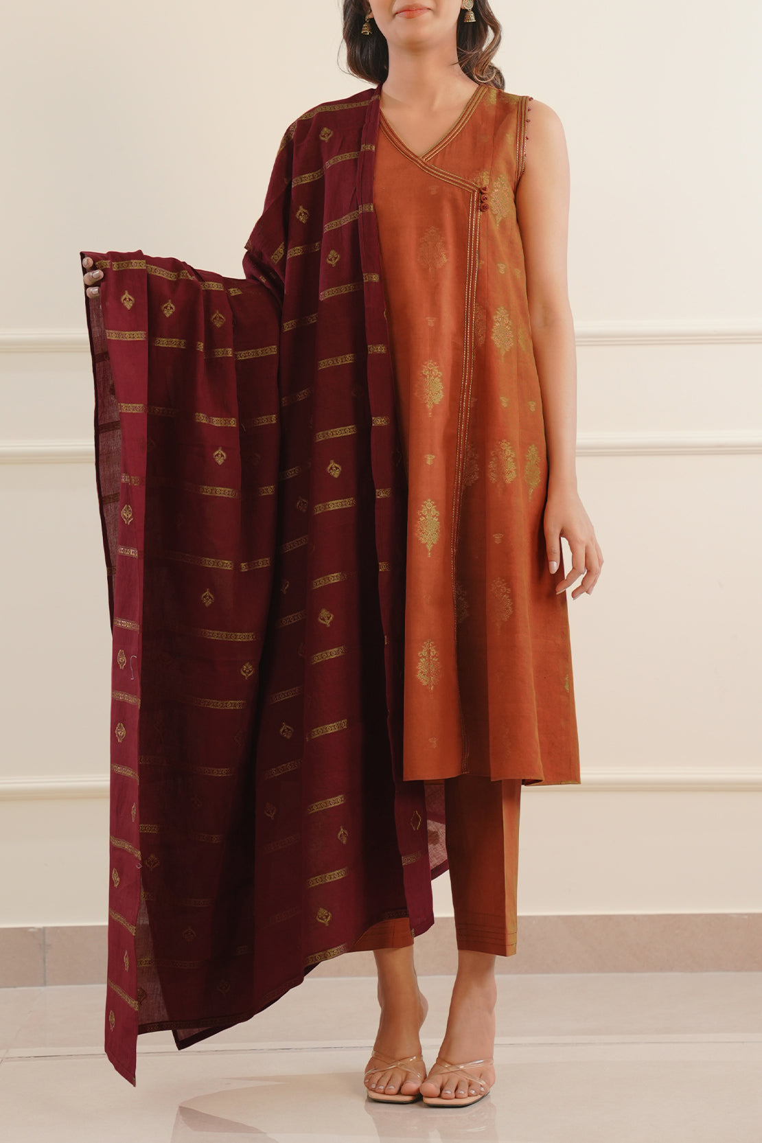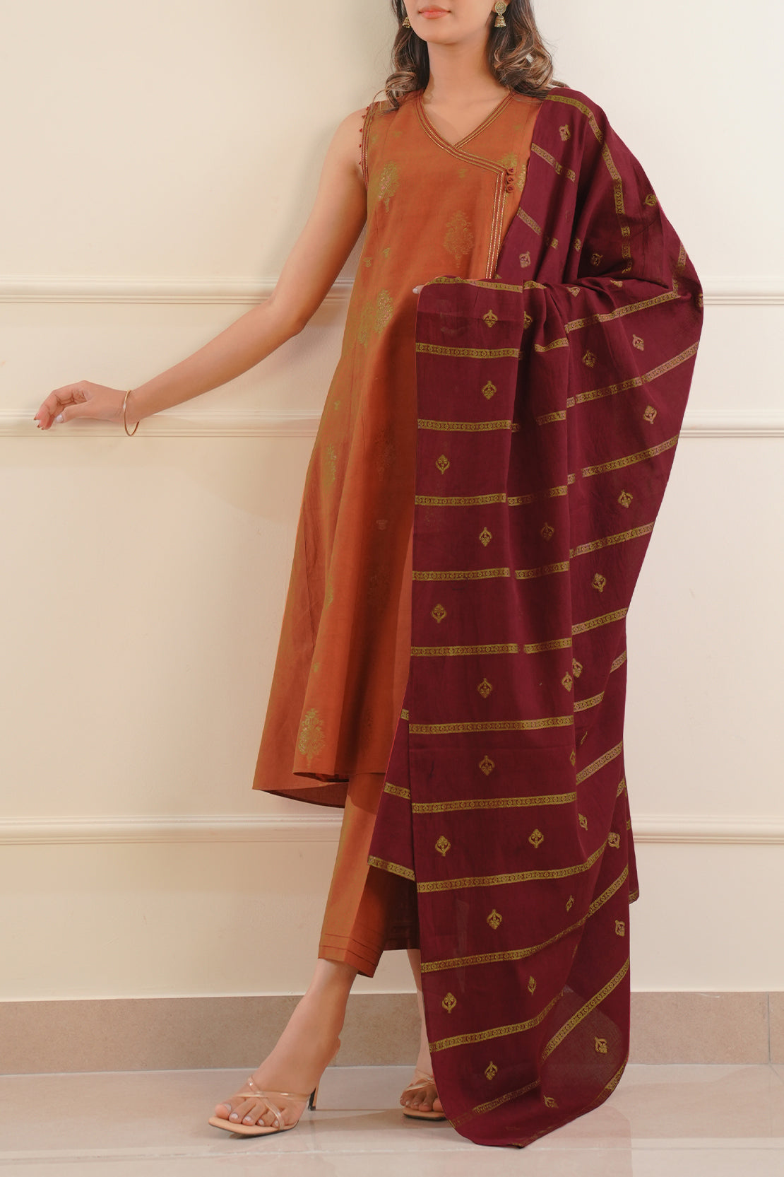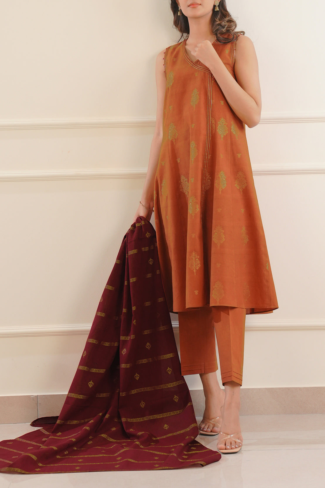 Elevate your wardrobe with this unstitched jacquard cotton 3-piece suit from Saya.pk. Featuring a textured jacquard shirt, plain trouser, and matching dupatta, this set blends traditional richness with breathable comfort—perfect for festive or semi-formal wear.