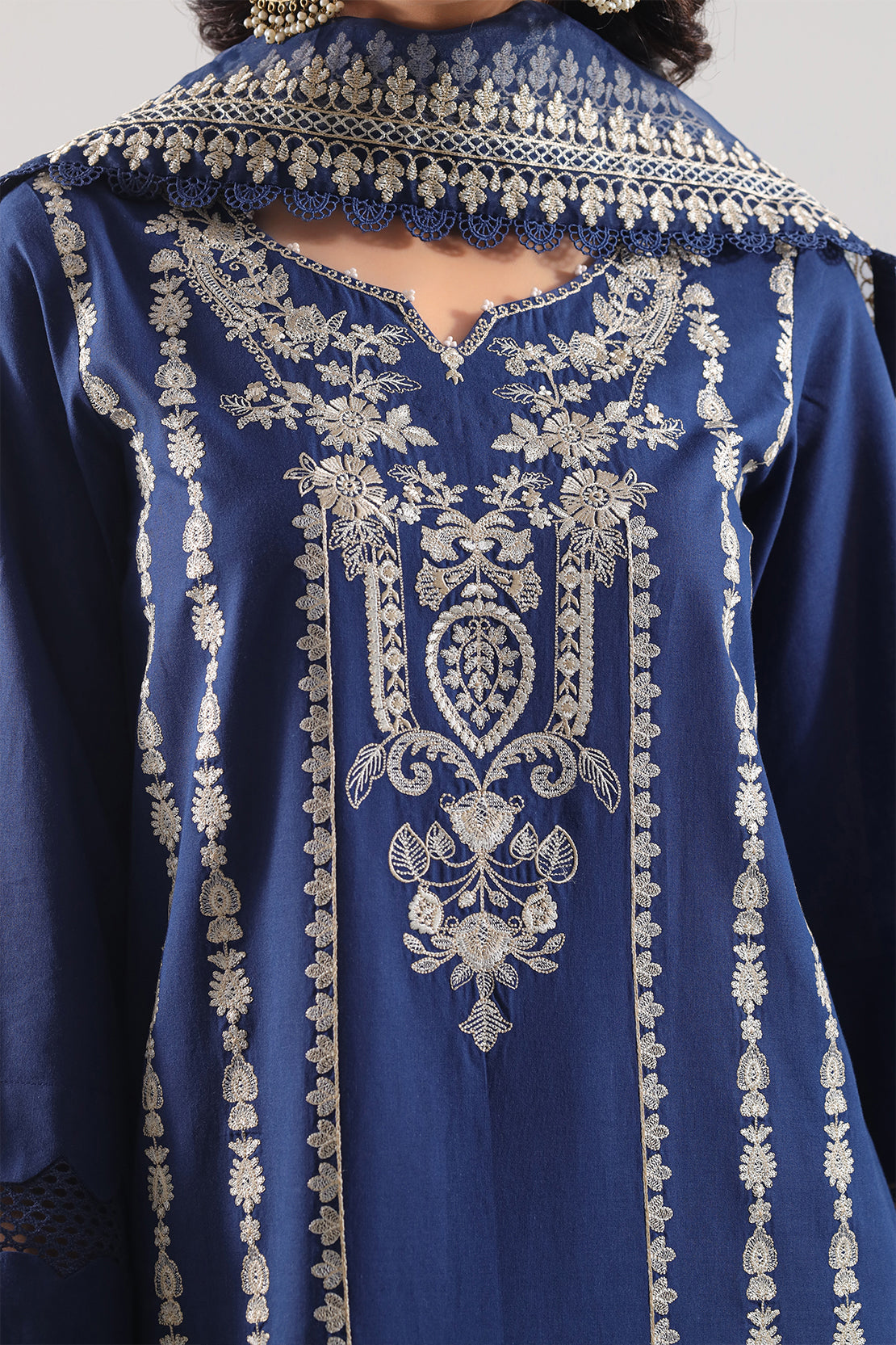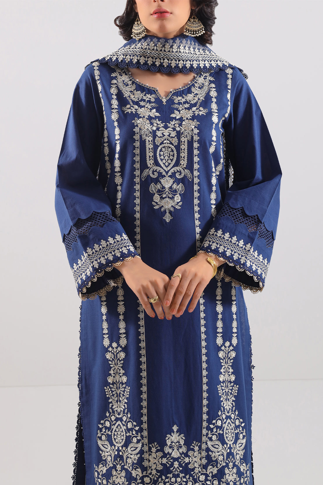Unstitched Solid Embroidered Cambric 3-Piece By SAYA Features Breathable, Lightweight Cambric Cotton With A Smooth, Slightly Glossy Finish. The Shirt Is Adorned With Delicate Thread Embroidery, Paired With Matching Trouser Fabric And A Flowing Dupatta For A Refined, Airy Look — Perfect For Summer Events, Festive Gatherings, Or Casual Elegance.
